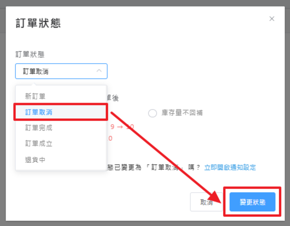 以往當消費者申請取消訂單後,管理員除了要進行訂單狀態更改外,還需要記得另外發電子信件回覆購買人訊息,如果因為忙碌遺忘,容易讓消費者留下不好的購物體驗。現在,當管理員收到取消訂單的申請後,在變更訂單狀態的同時,系統就會自動發送「訂單已取消」的回覆通知給消費者,一個動作就能簡單完成,讓訂單管理更加輕鬆簡便! |