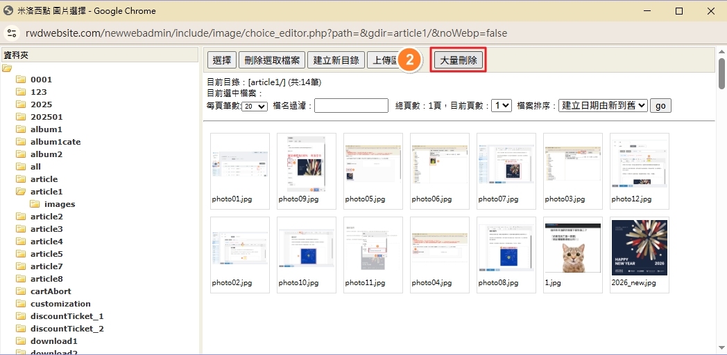 大量刪除 刪除資料庫圖片