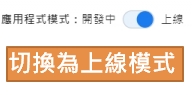 ※ 若在此步驟出現以下錯誤訊息「您必須提供有效的隱私政策網址,才能夠將應用程式上架。」,請先將應用程式模式從開發者切換為『上線』後,再繼續步驟。
