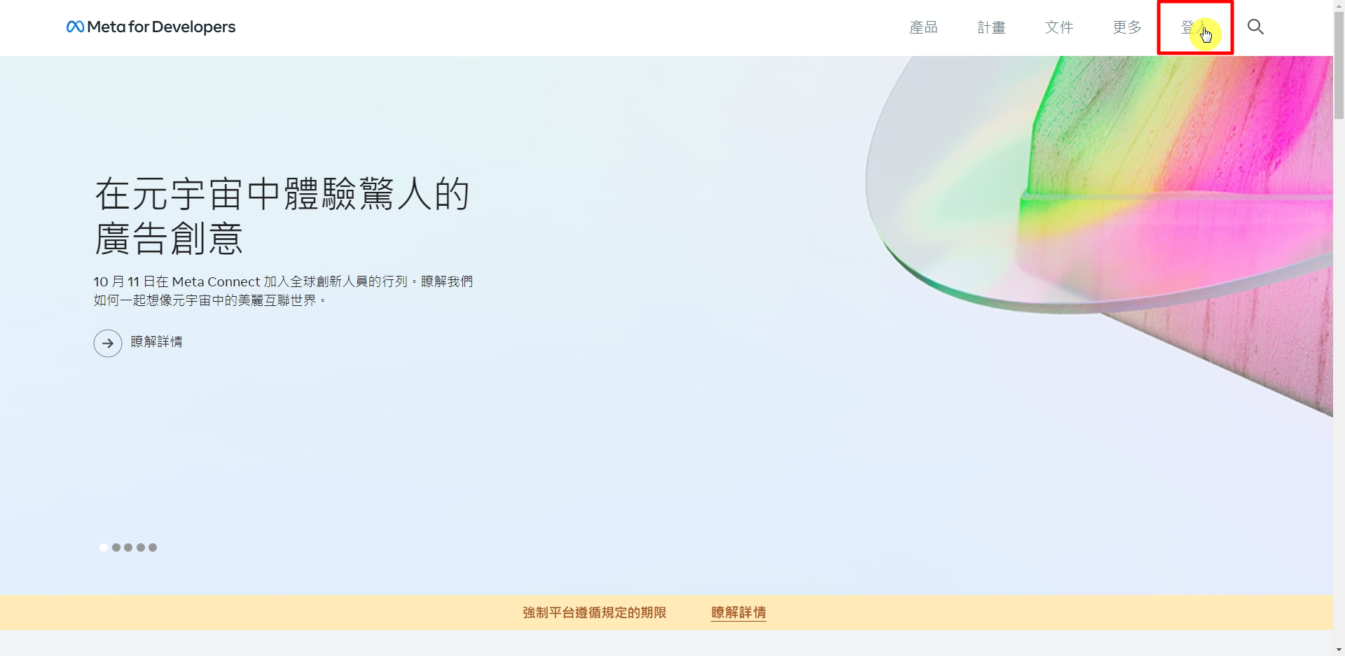 STEP 1:進入Facebook Developers網站,( https://developers.facebook.com/ ) 並登入Facebook帳號