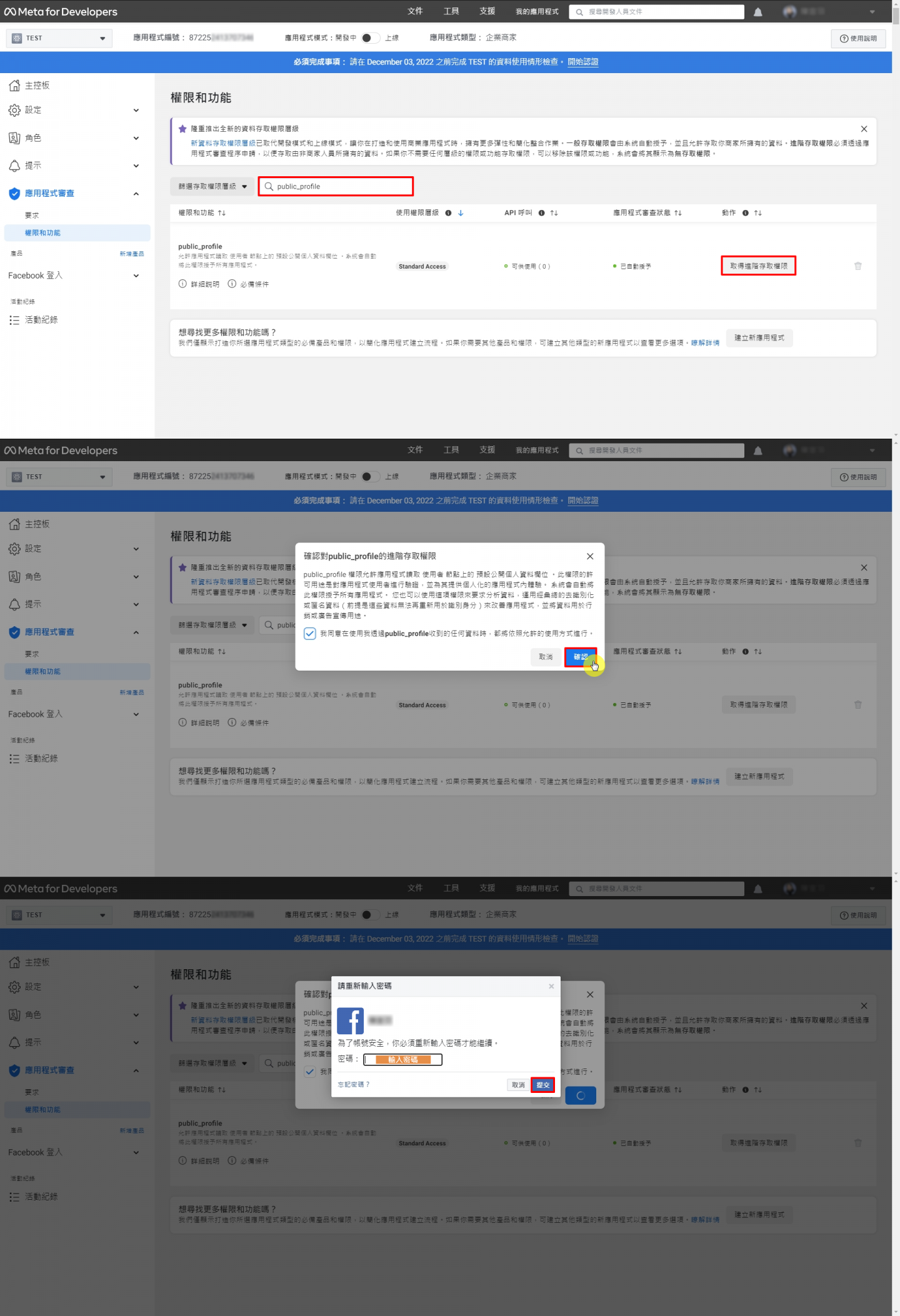 ※ 使用篩選存取層級:輸入「public_profile」,並點擊「Enter」