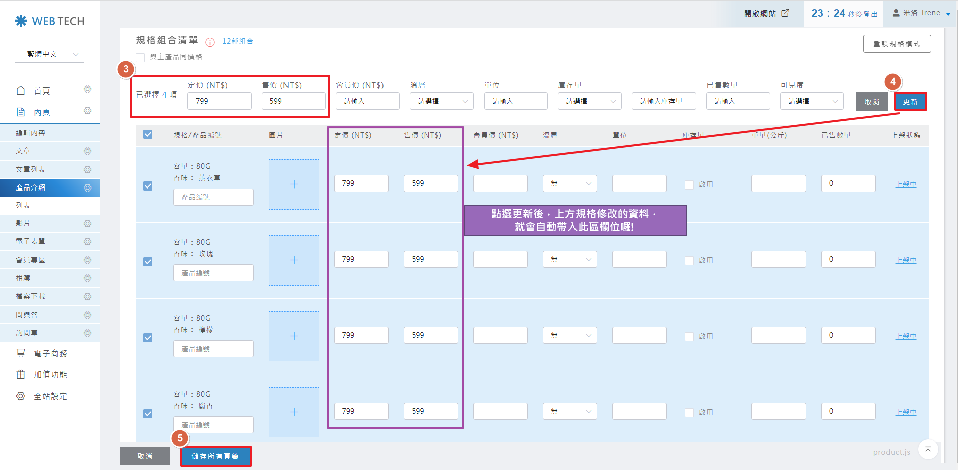 當您的產品有多種規格時,此功能可免去一個一個修改的困擾,可進行批量修改,那就一起來看看如何設定吧!