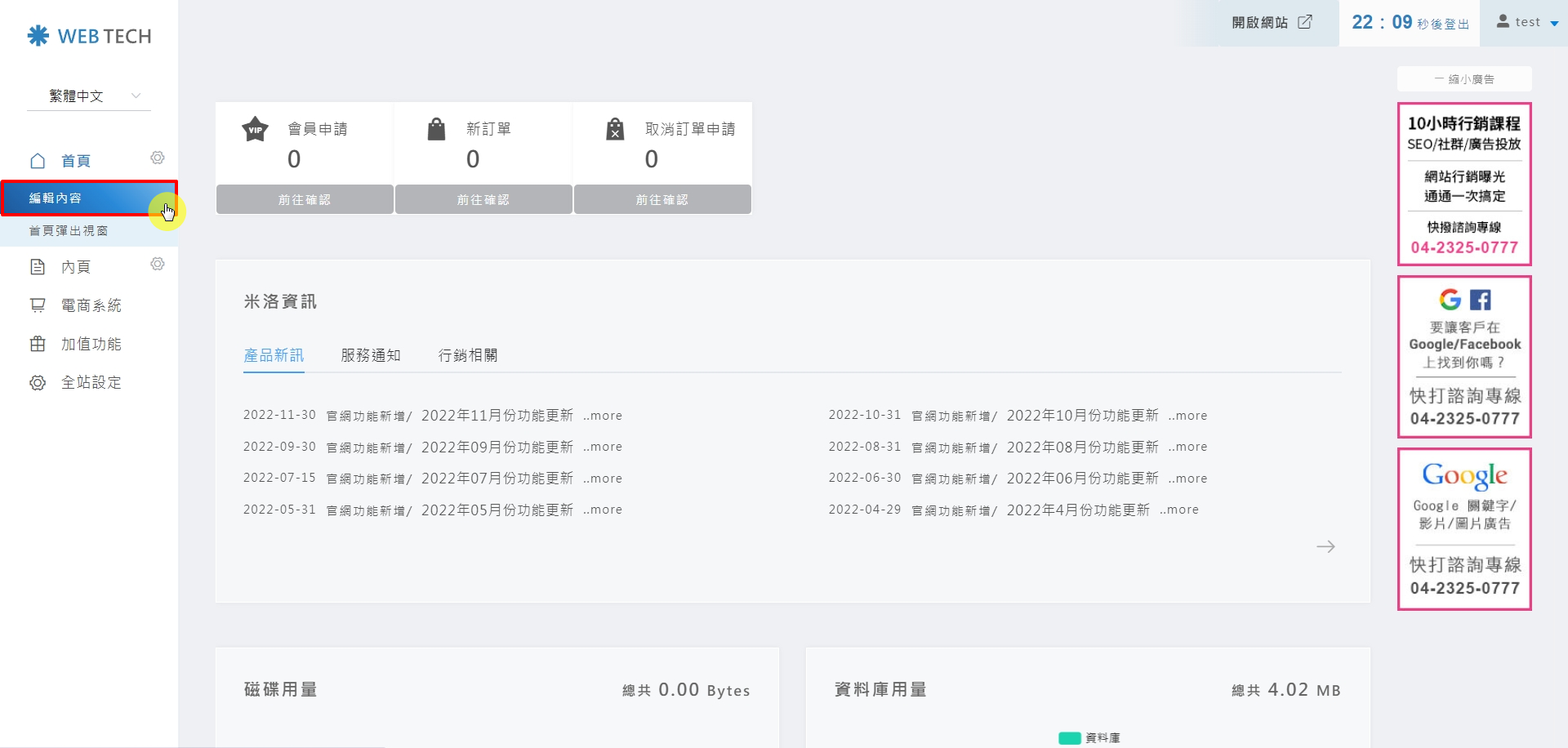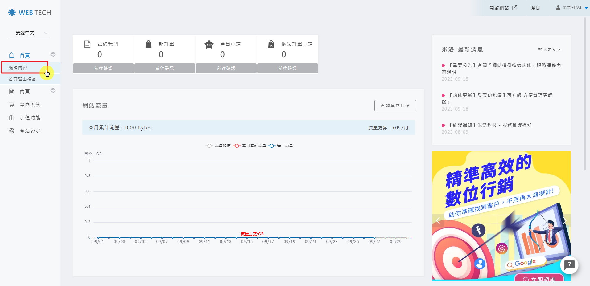 STEP 1:進入米洛後台網站,點選首頁「編輯內容」