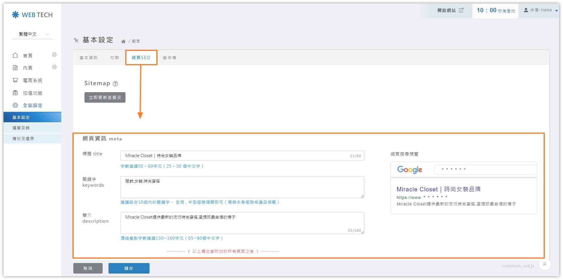 以下會介紹「首頁、內頁、電商系統、加值功能、全站設定」的通用項目說明。