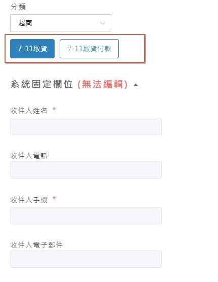 STEP 2:點選「收件人欄位」>選擇分類(如下:宅配)