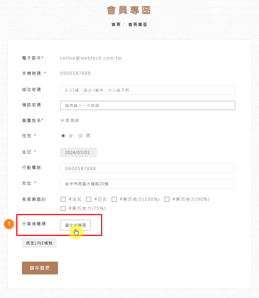 推薦人可從「會員專區」頁面中,點選「產生推薦碼」。