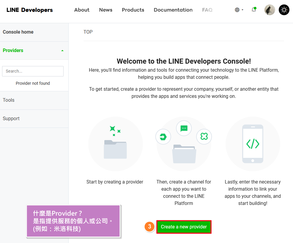 LINE Developers 是幫助您把 LINE的功能串接到網站的官方平台。