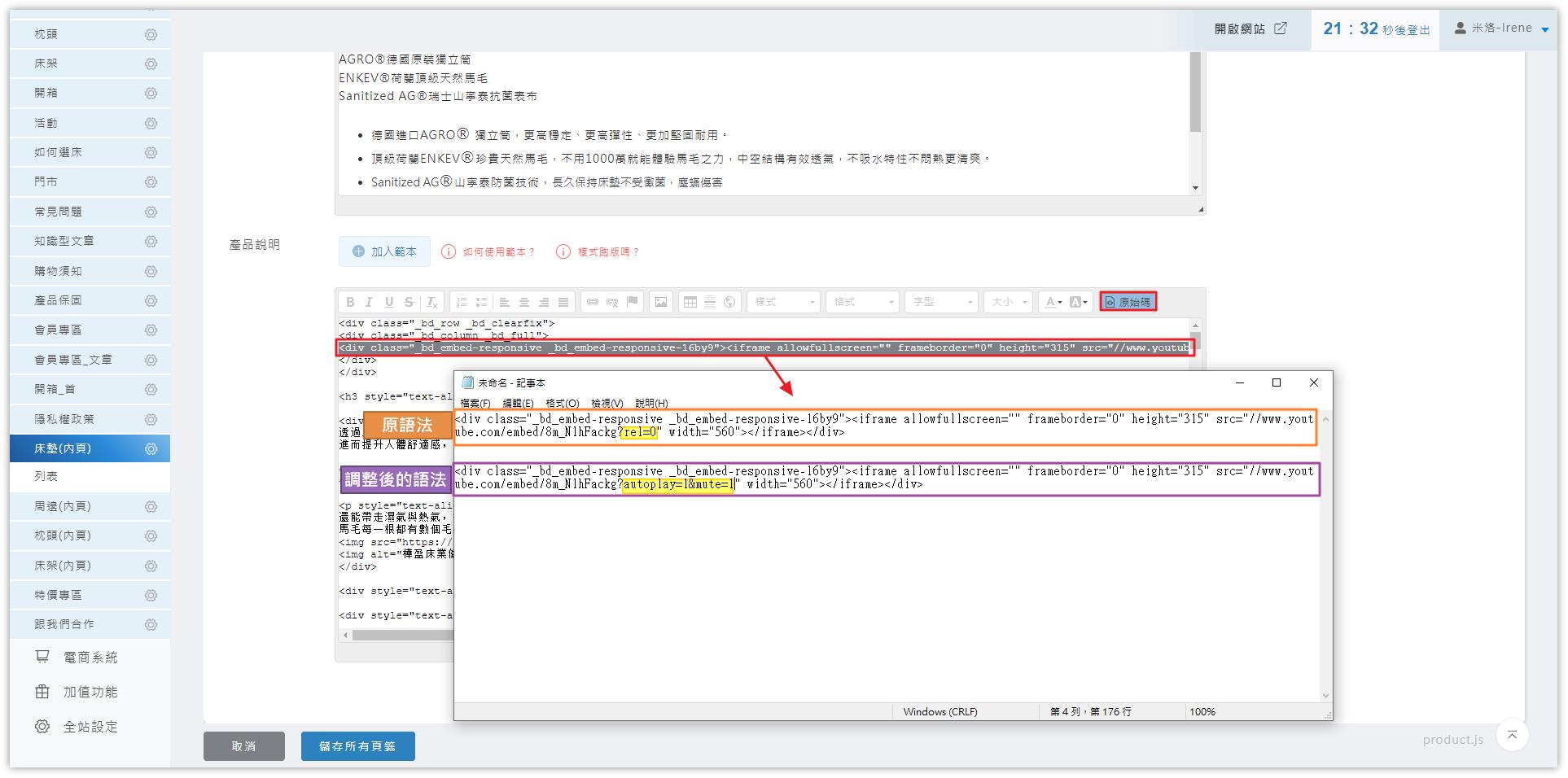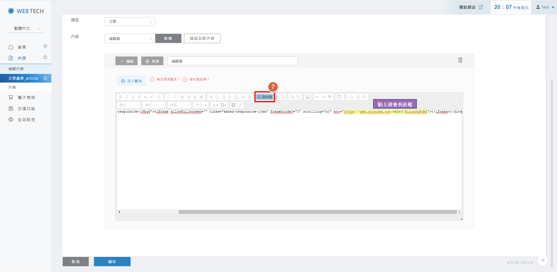 將步驟5複製的youtube連結,取代後台編輯區塊的【您的youtube影片網址】。