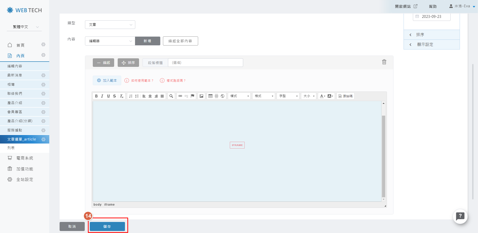貼上後點擊「原始碼」,返回後台編輯畫面。