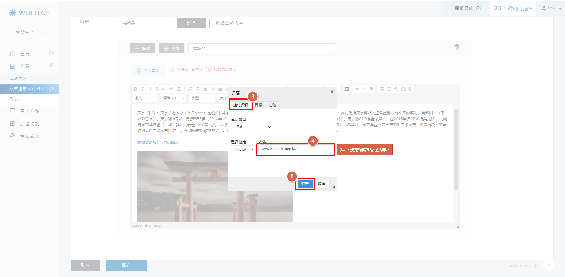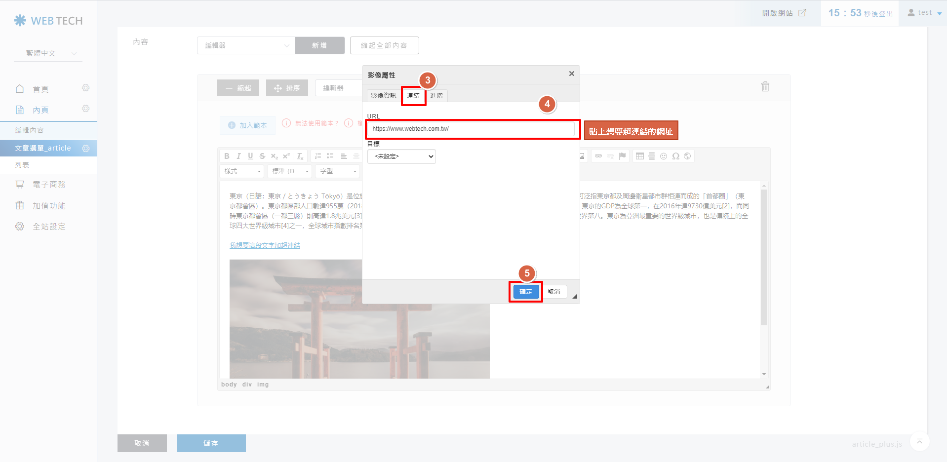 返回到後台編輯頁面後,按下「儲存」,恭喜你! 你已經完成圖片超連結的設定囉!
