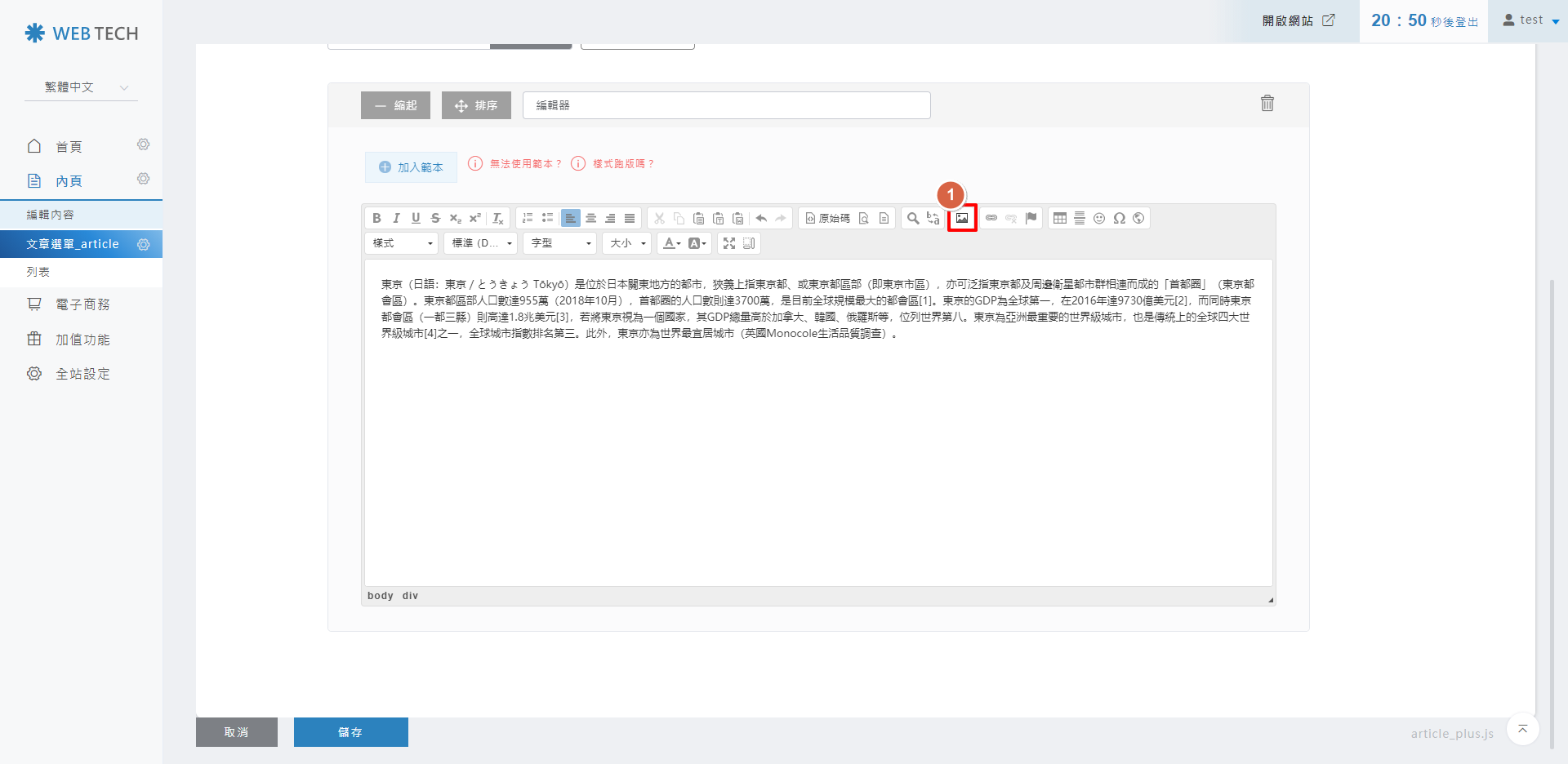 7. 回到後台編輯頁面,按下「儲存」即可。
