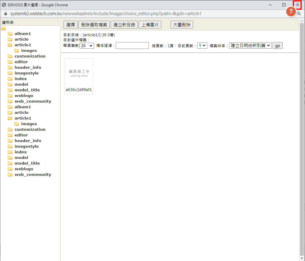 圖片刪除即無法回復,建議刪除前,請再三確認,並至後台「資料備份」內進行備份。