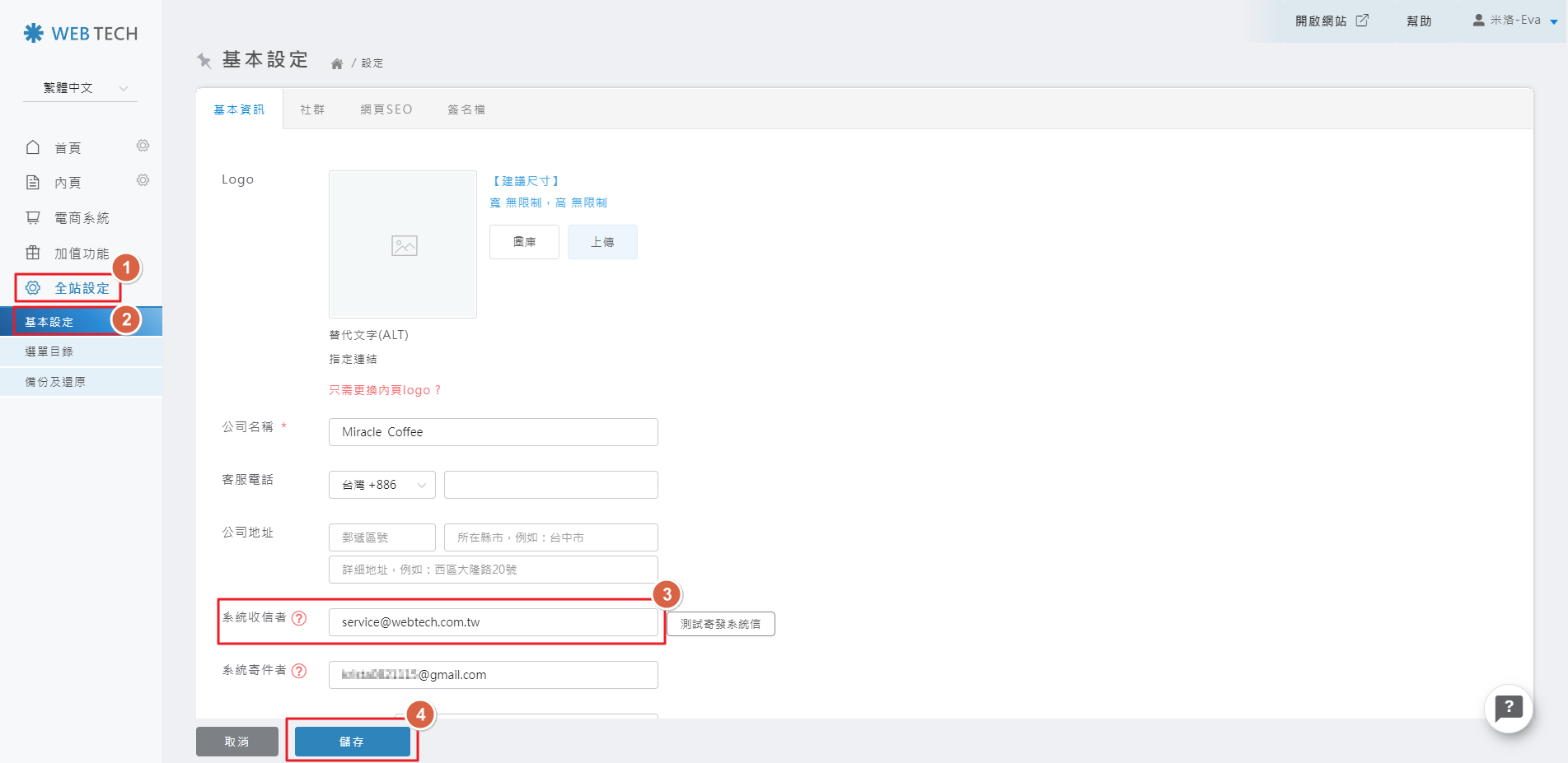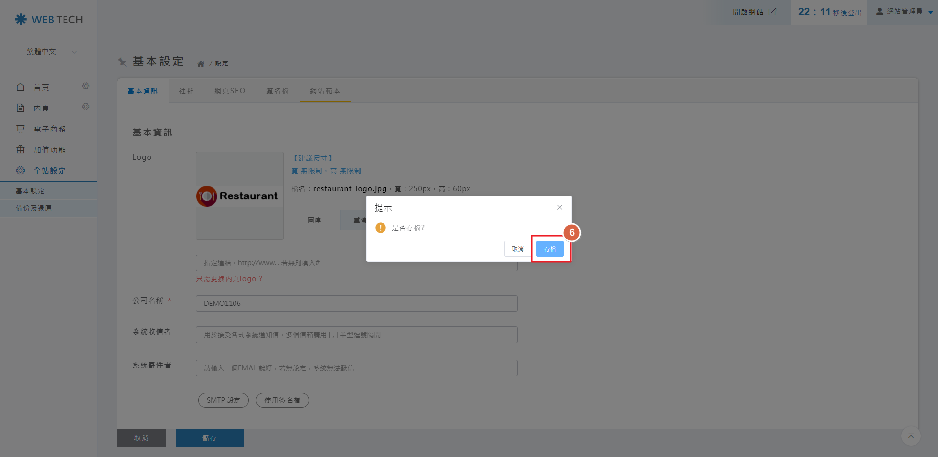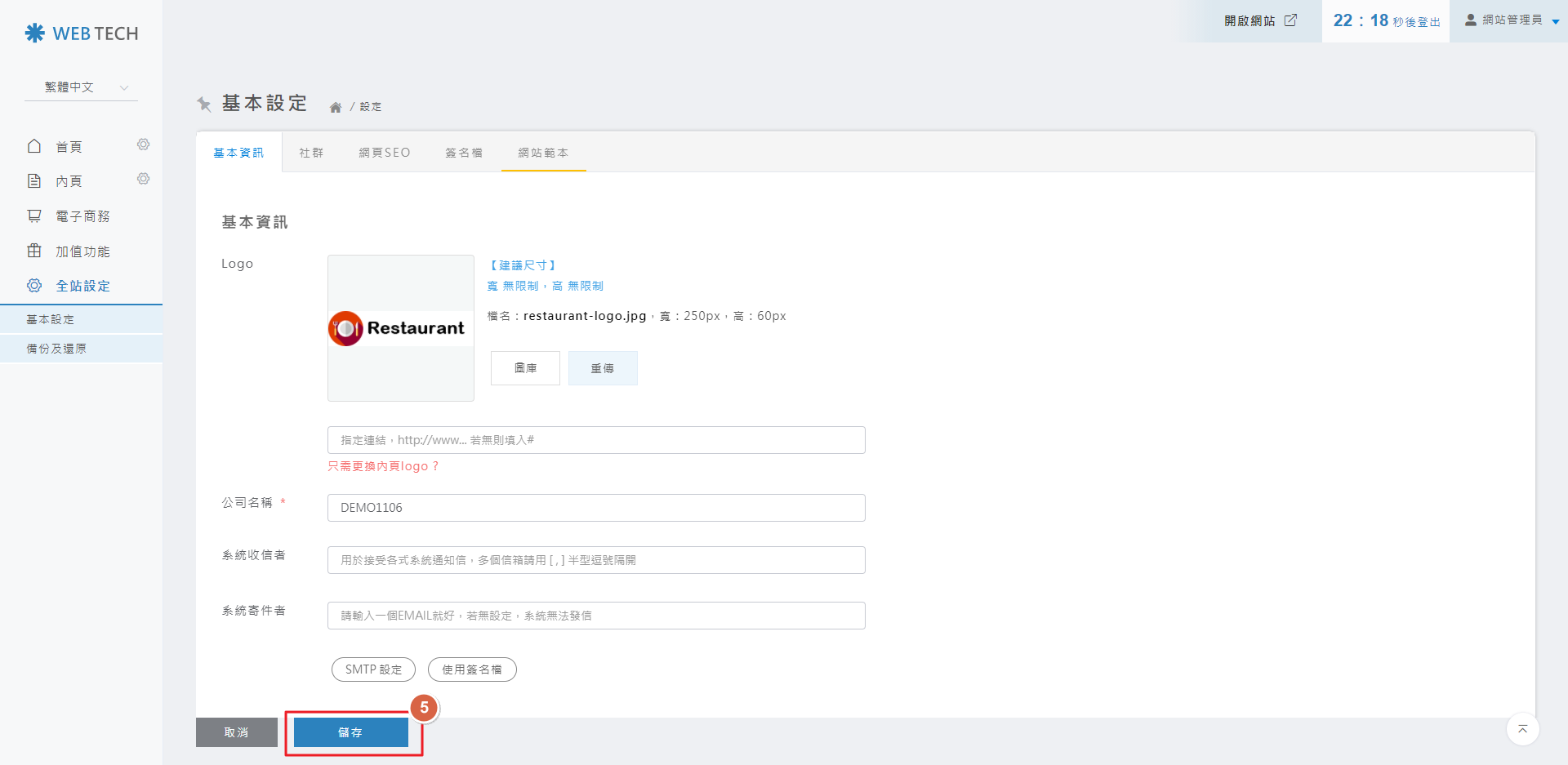 圖片出現在LOGO欄位後,請點擊「儲存」。