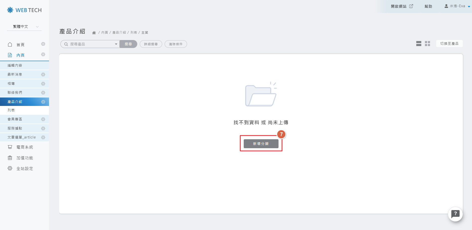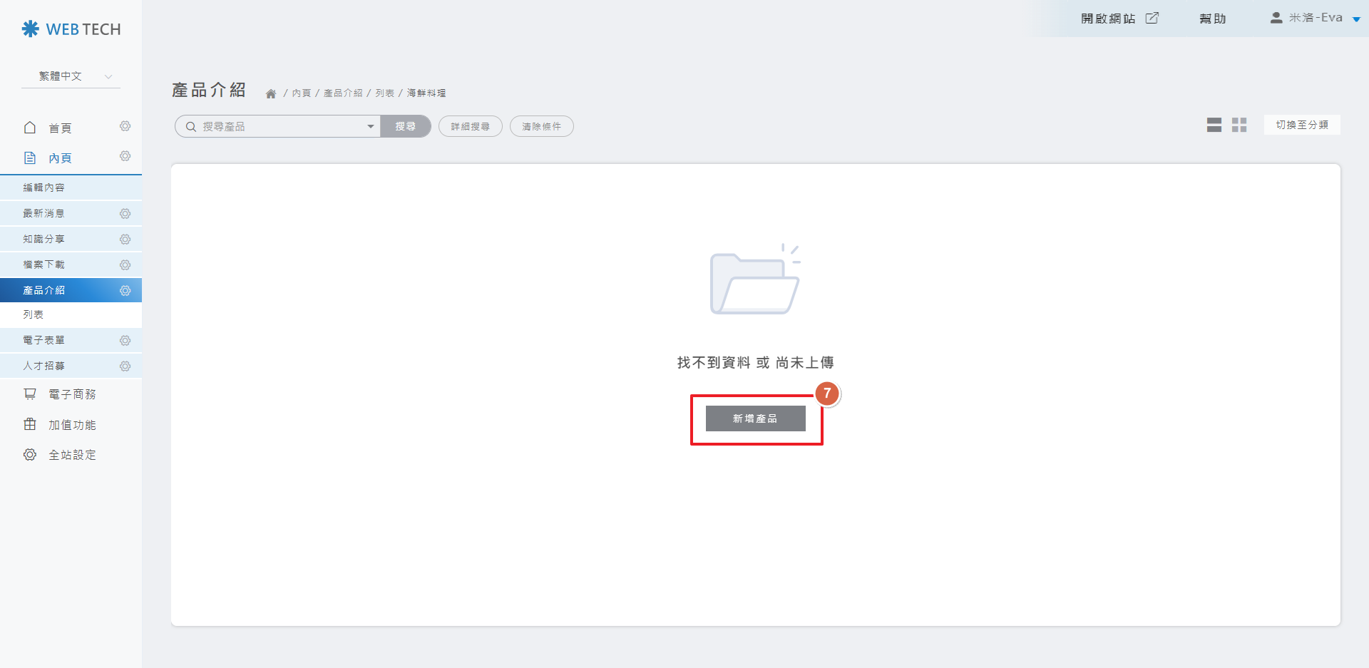 進到資料目錄裡面之後,請點擊「新增產品」的按鈕