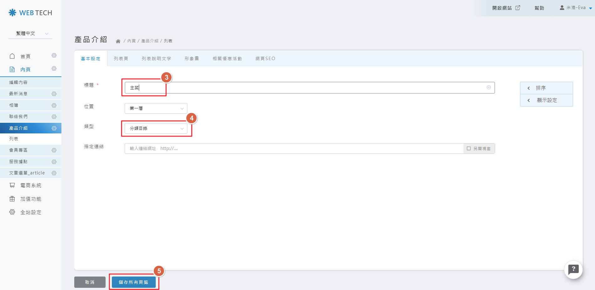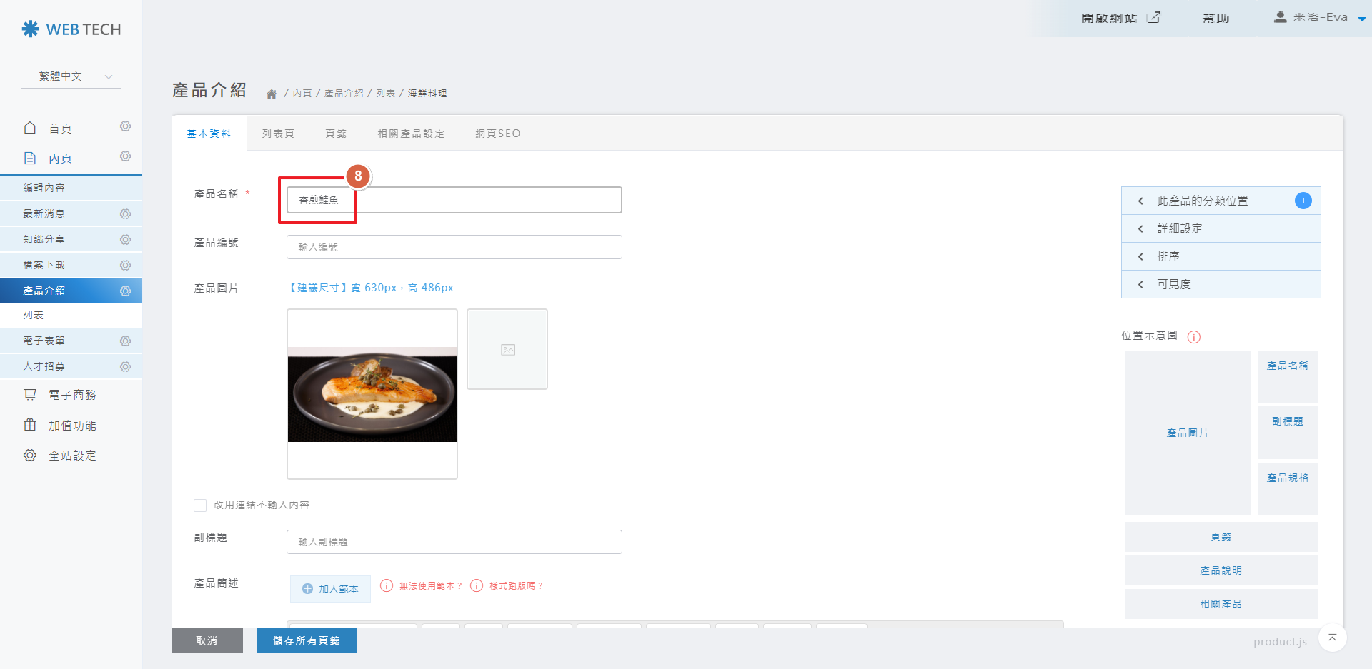 請輸入產品名稱、上傳產品圖片等作業,存檔即可完成新增產品囉!!