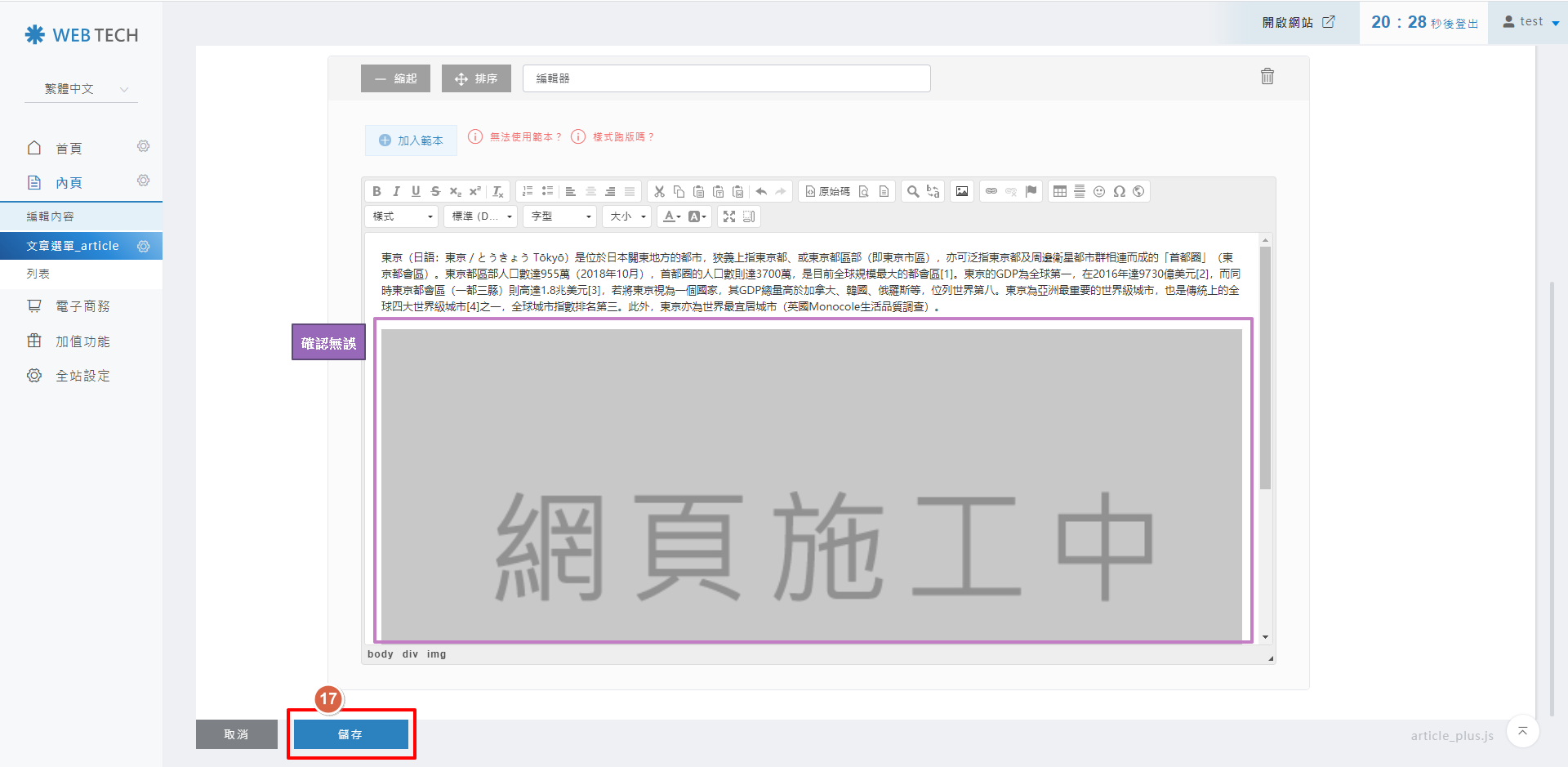 返回後台編輯器頁面,存檔即可