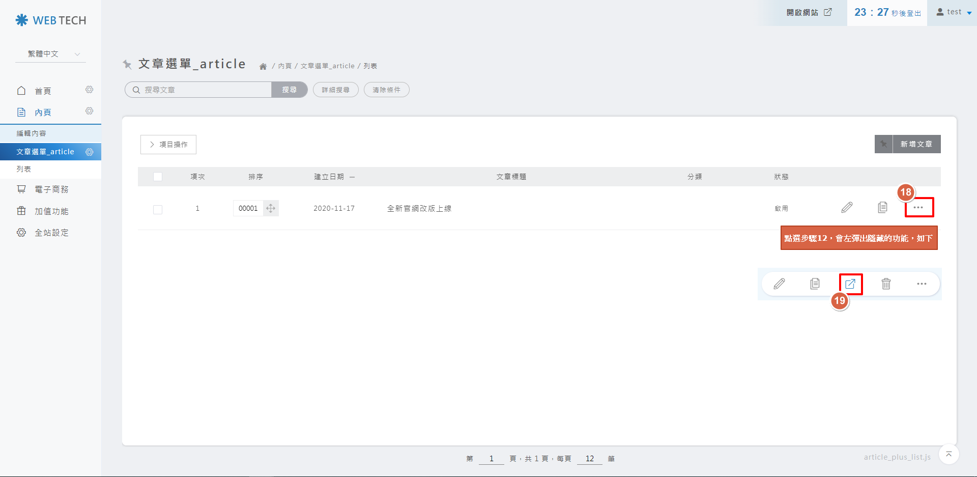 在要確認項目的右後方,點選三個點點,會向左彈出隱藏的功能,點選瀏覽頁面的icon