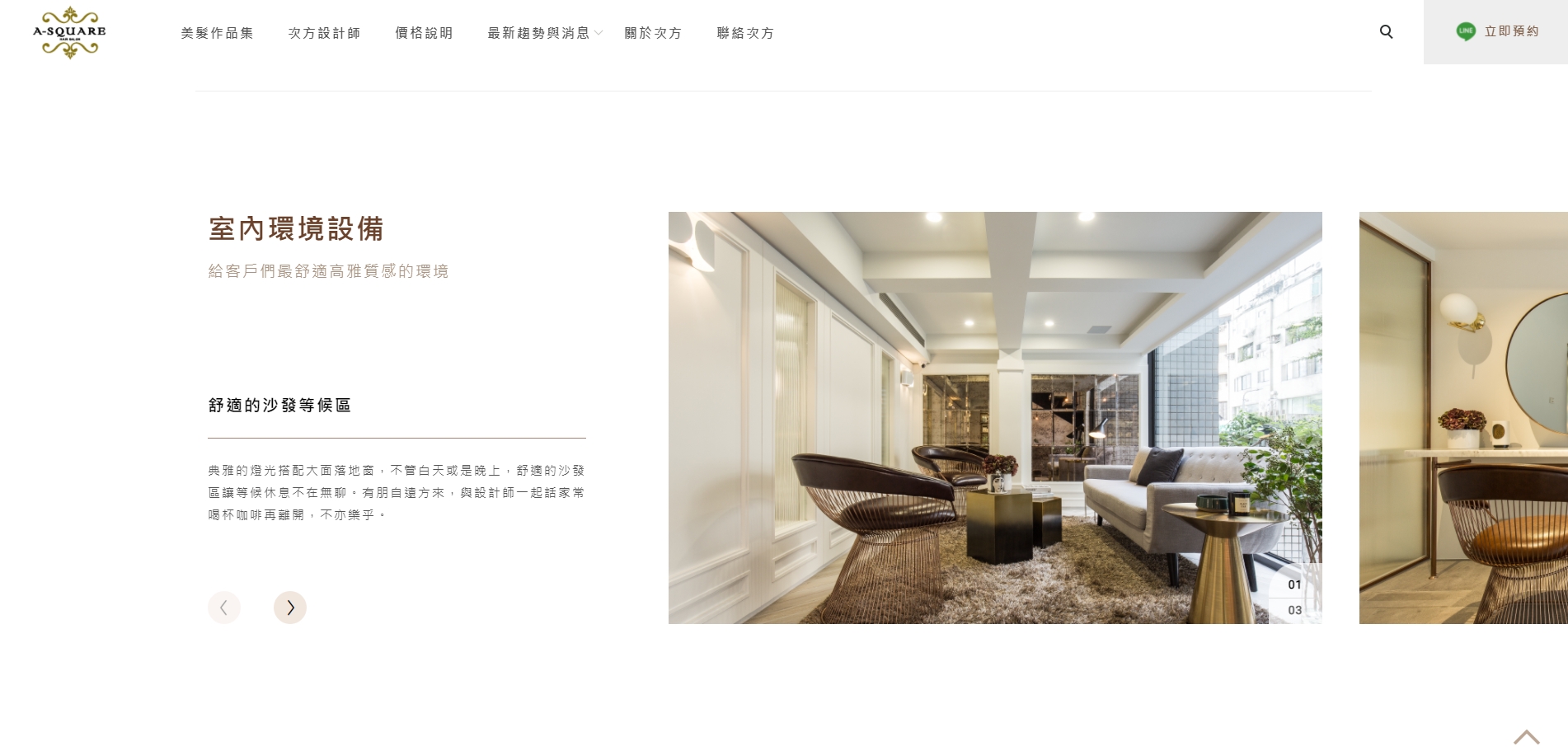 視覺部份,設計師以店內大地色裝潢為主色調,延伸至整個網站,簡潔編排突顯高雅氛圍,搭配直覺的文案,將專業技巧完整表述。
