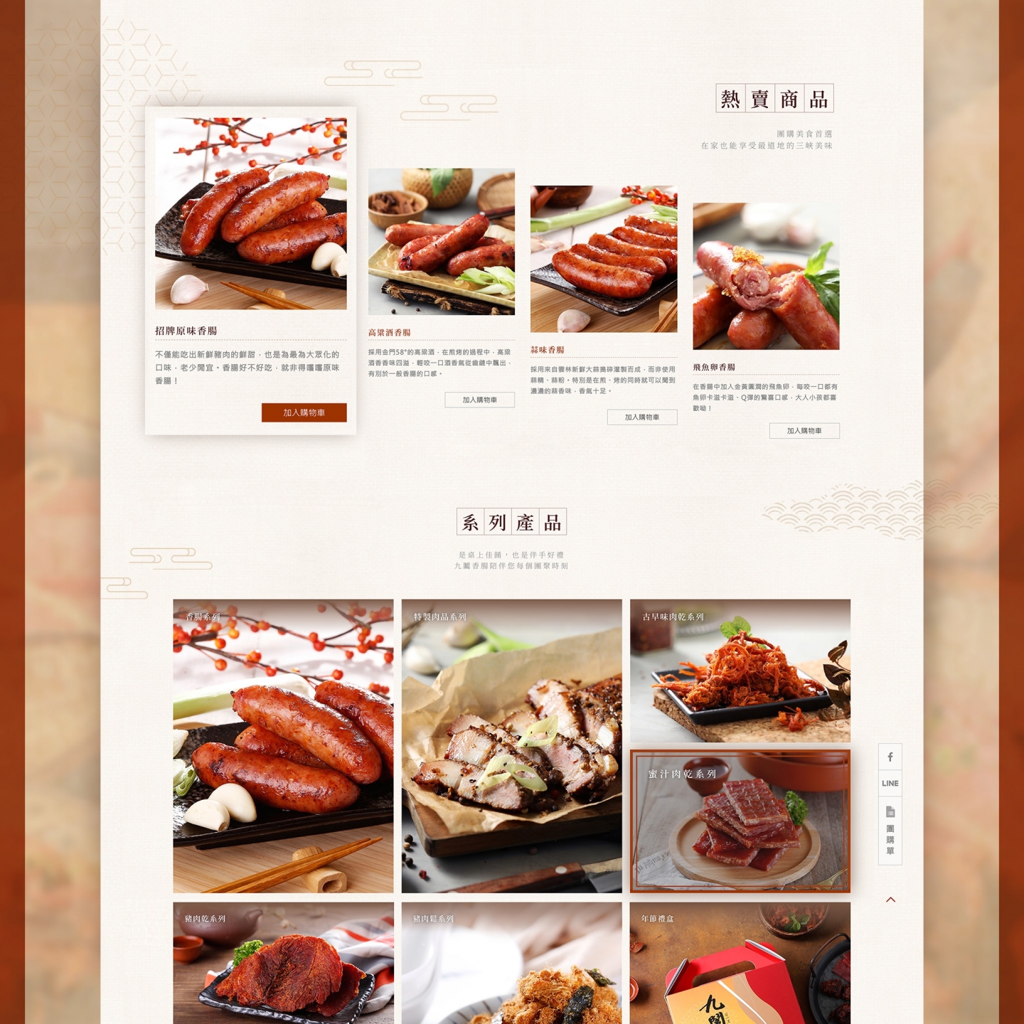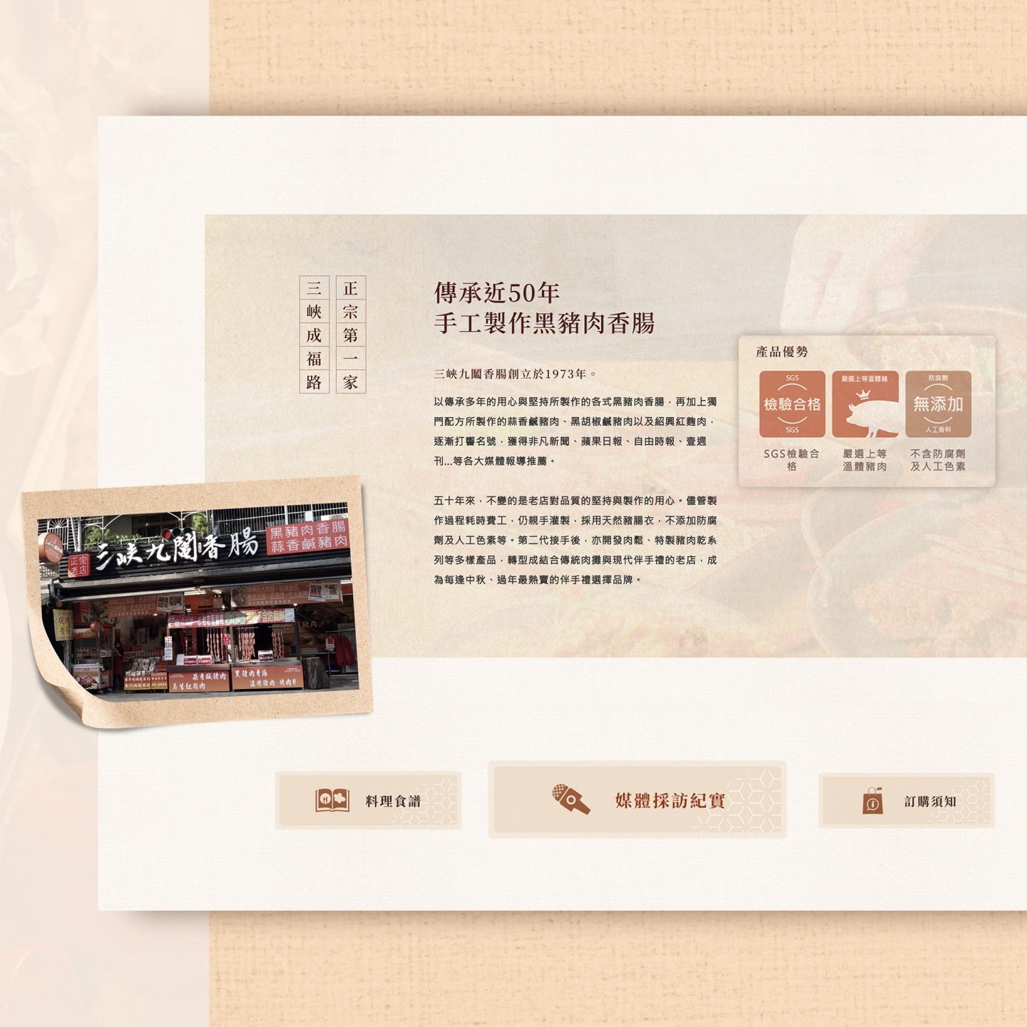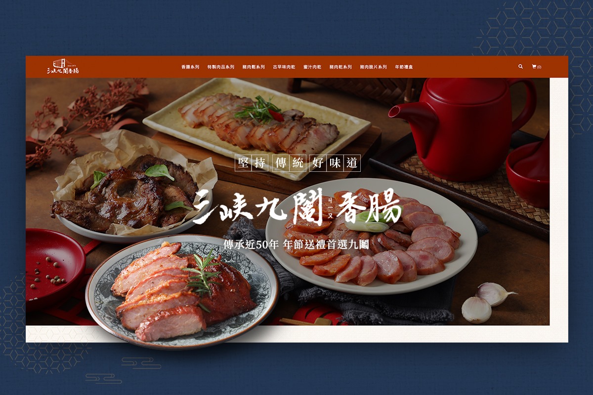 「九鬮香腸」是三峽香腸一條街的在地名店,希望透過網站創造新形象,為老店帶來更多商機!