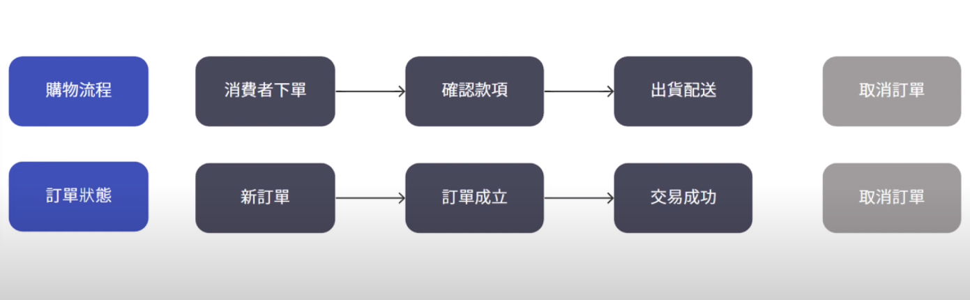網站系統預設四種訂單狀態,以下進行購物流程、訂單狀態的關係說明 :