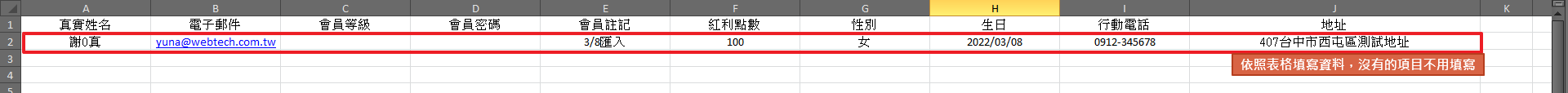 ※匯入的資料務必務必要保留原表格內容,沒有資料的空格,切記勿刪除或隱藏任何欄位,