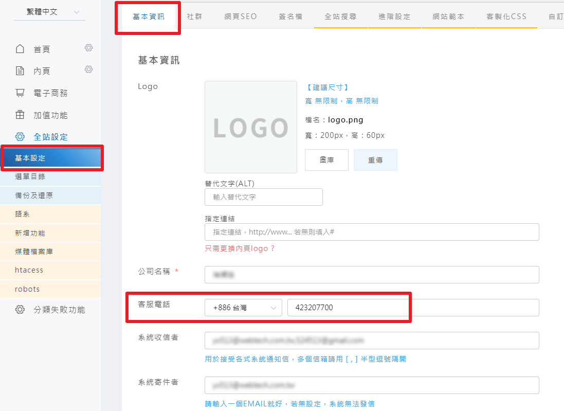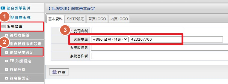 ※備註:系統目前只有支援+886台灣/日本/美國/香港的電話格式。如果您的客戶服務電話不是以上這些國家的電話,可向您的網站輔導專員進行說明,米洛將協助後續的階段性更新。