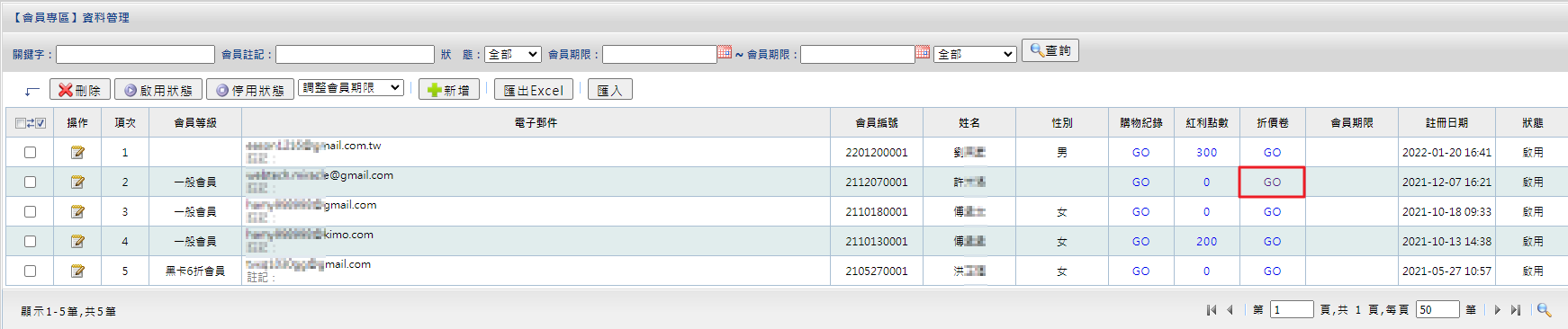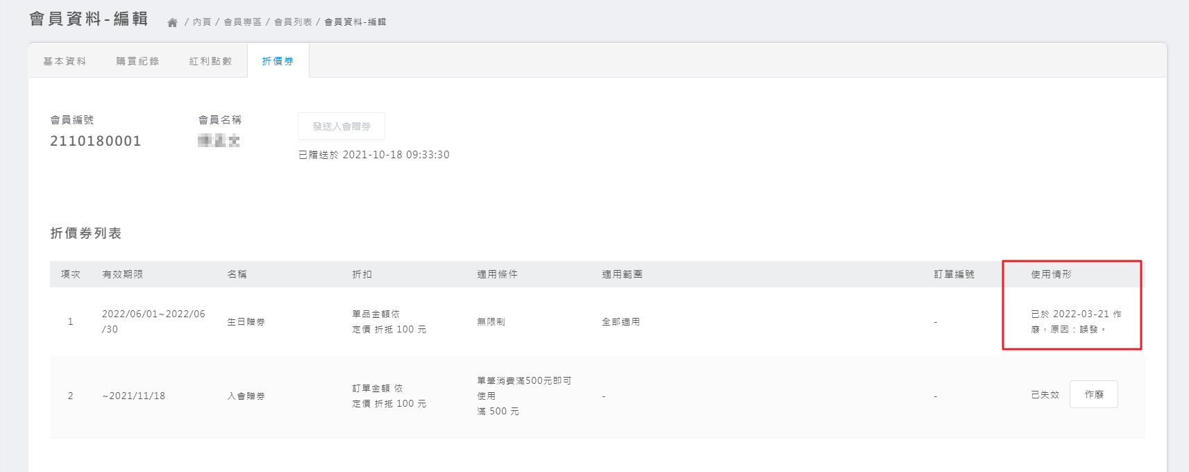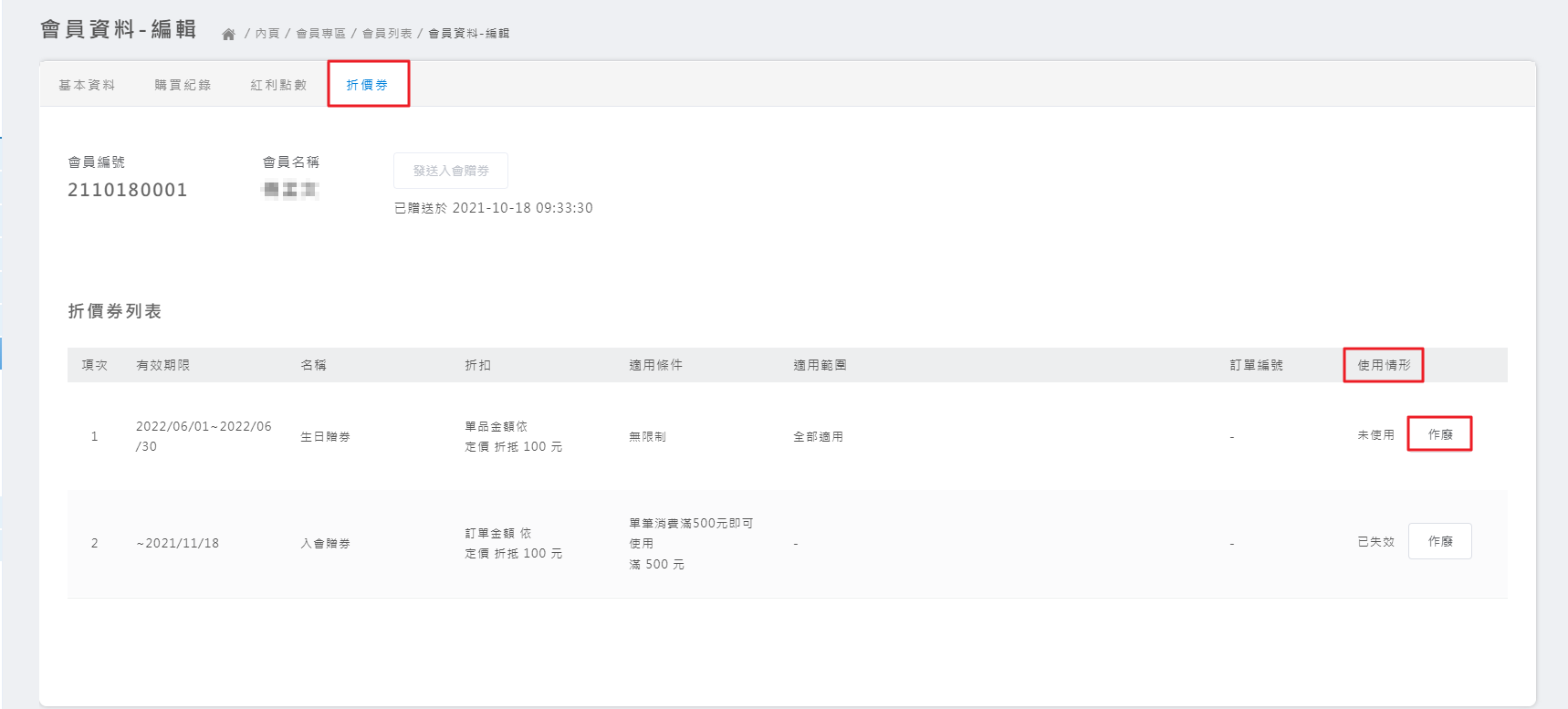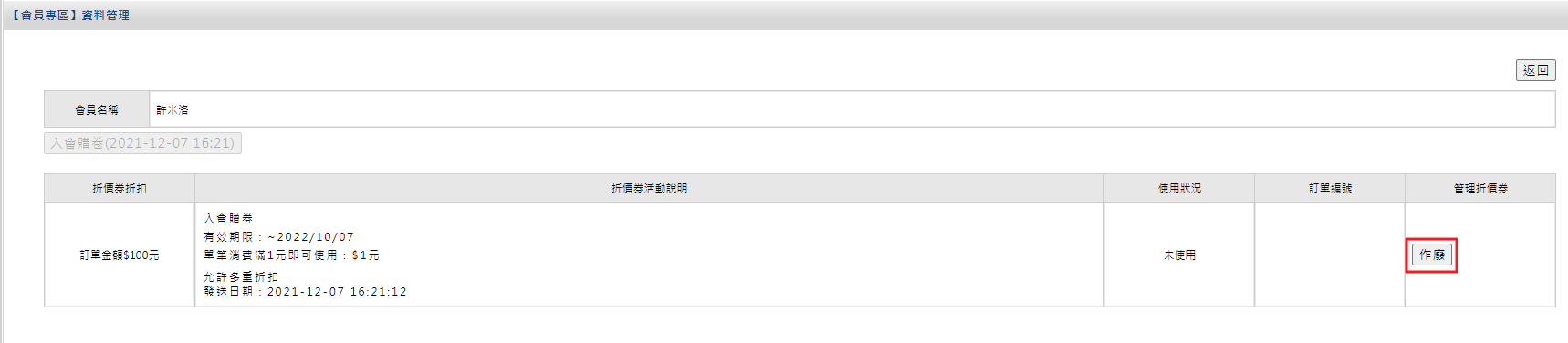 二、會員折價券管理提供【作廢按鈕】(新/舊後台)