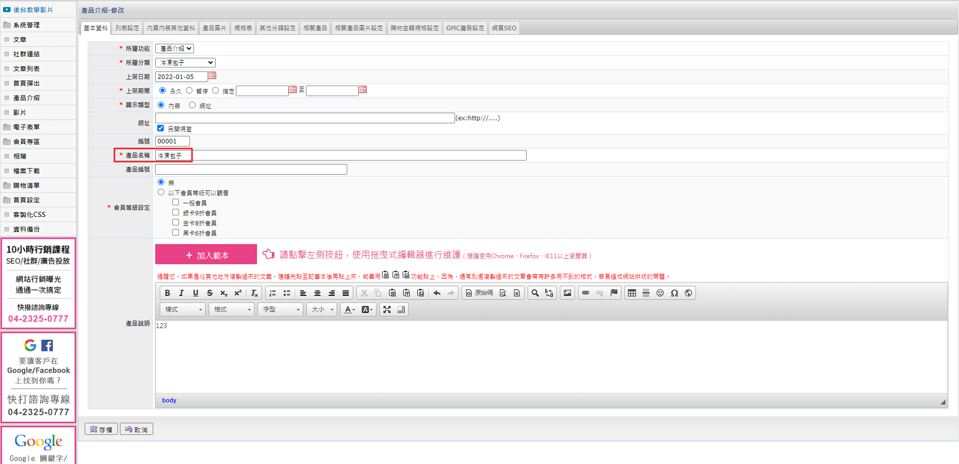 ※ 舊後台-產品名稱欄位: