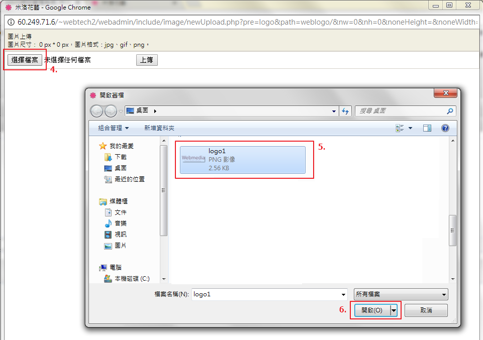 選擇欲設定的頁面LOGO