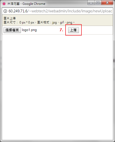 點選「新圖片上傳」,依圖片步驟上傳