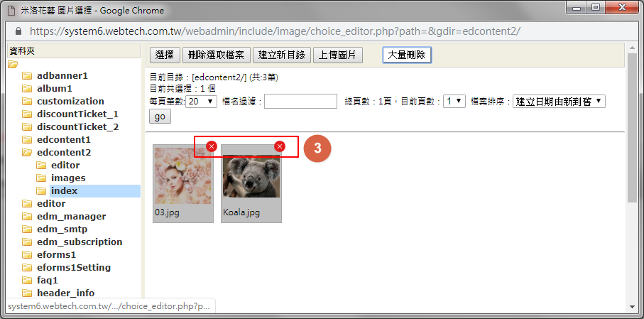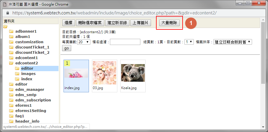 如需"大量刪除"已上傳圖片,請參照以下操作方式: