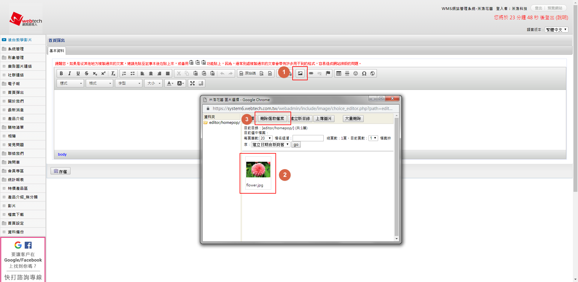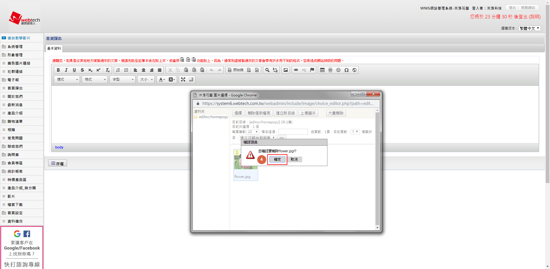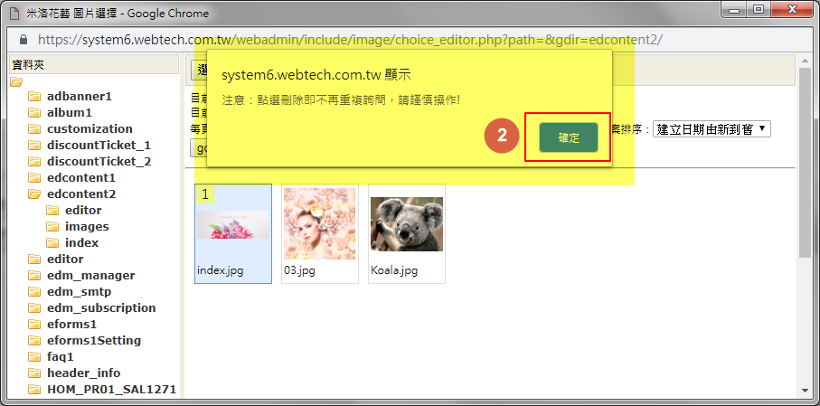 ※ 請注意,圖片刪除即無法回復,建議刪除前先至後台「資料備份」內備份。