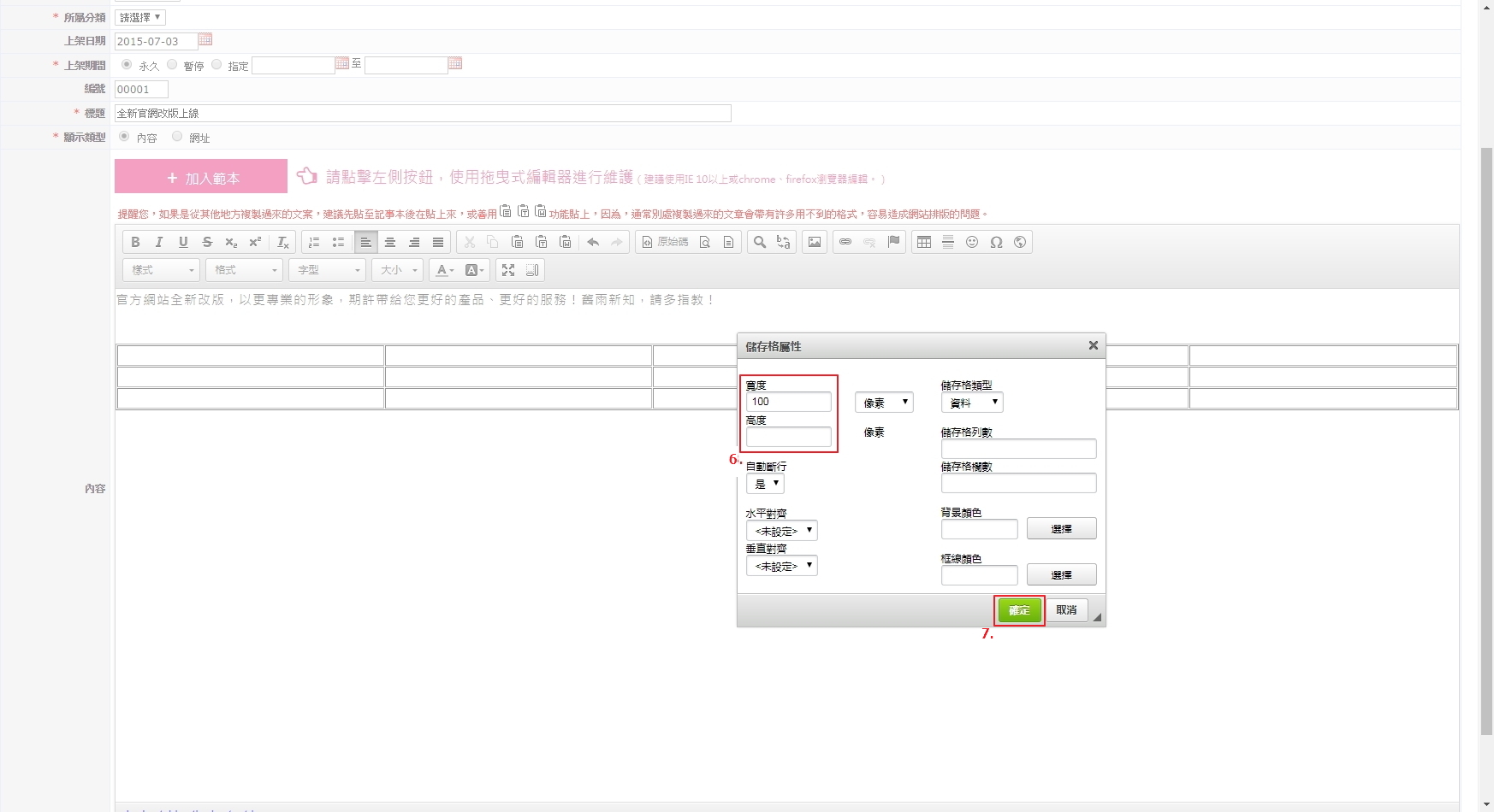 選擇「儲存格屬性」