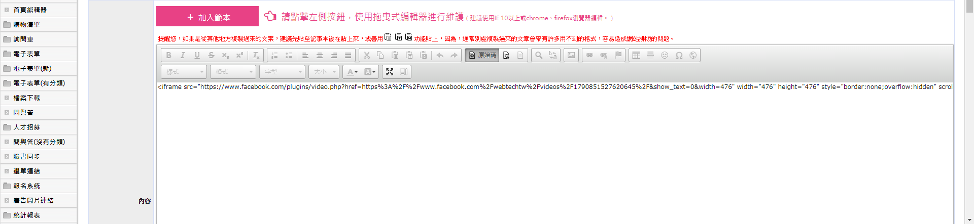 12.如何嵌入FB影片