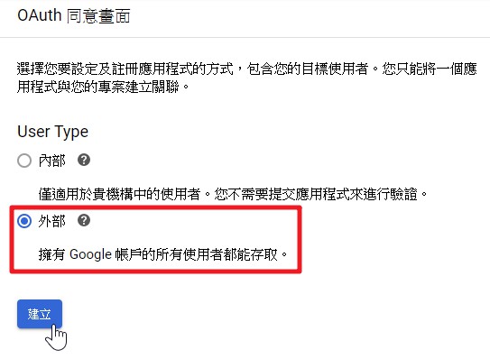 STEP 4:建立 Oauth 用戶端 ID初次新建憑證請點選「憑證」>「+建立憑證」>「Oauth 用戶端 ID」