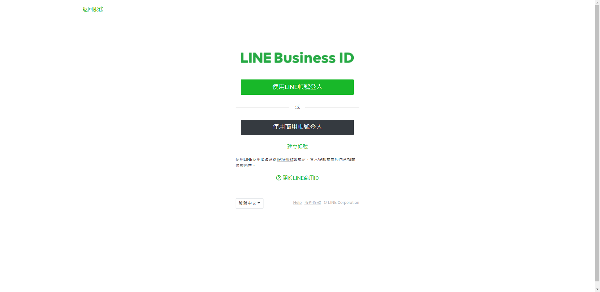 選擇使用LINE帳號登入 (如您已有建立商用帳號,也可選擇使用商用帳號登入)