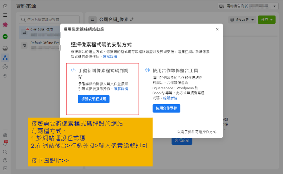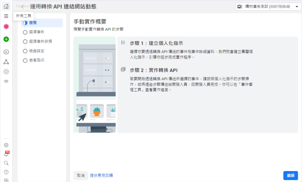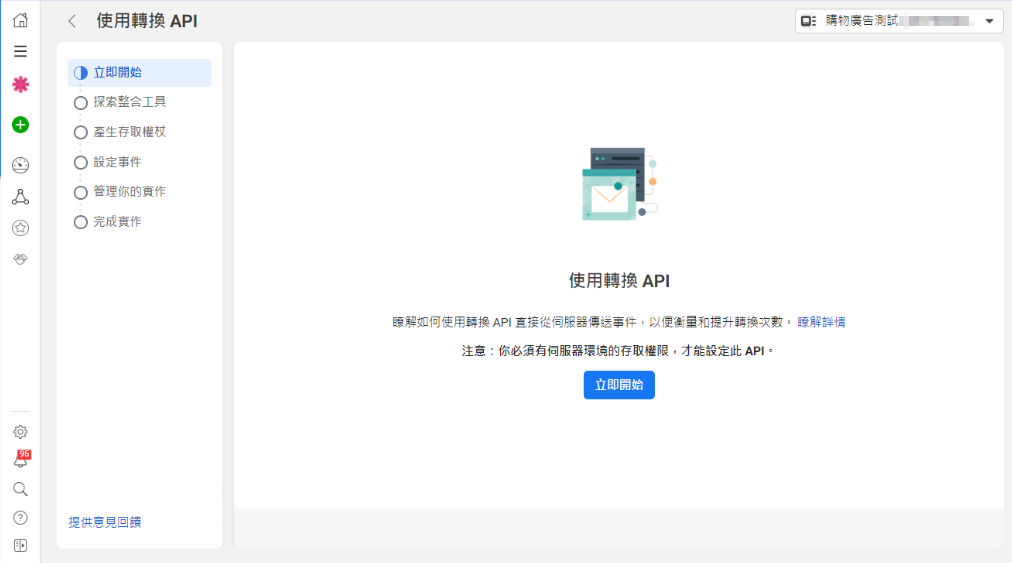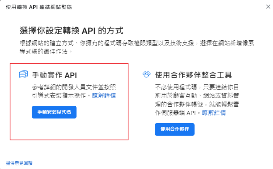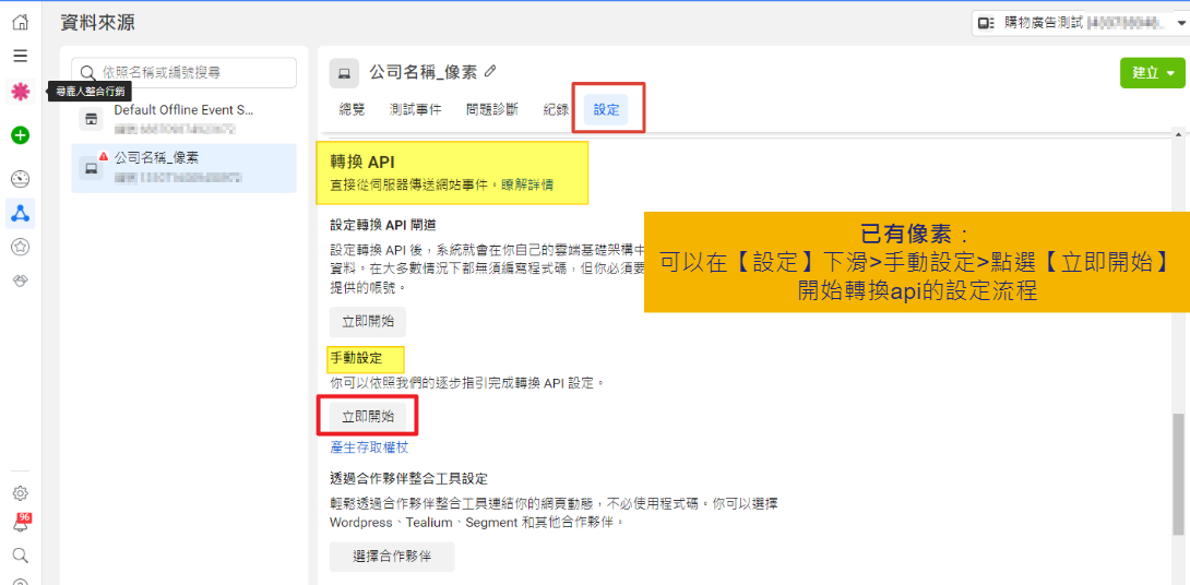 - 已有像素:可以在【設定】下滑 → 手動設定 → 點選【立即開始】開始轉換api的設定流程