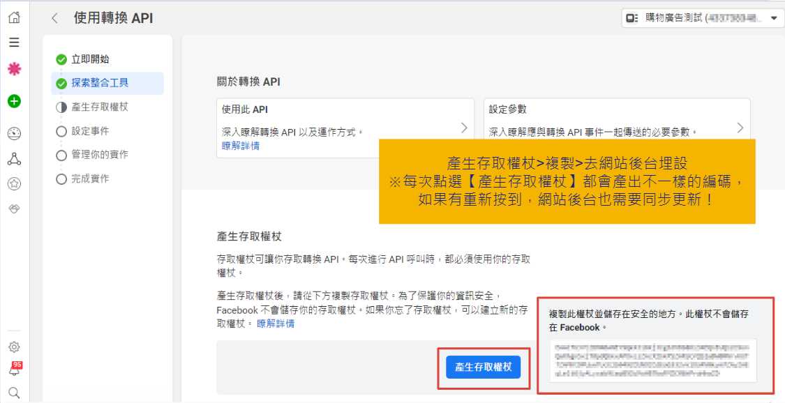 Step 3 產生存取權杖 → 複製 → 去網站後台埋設