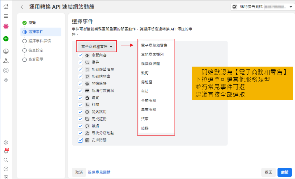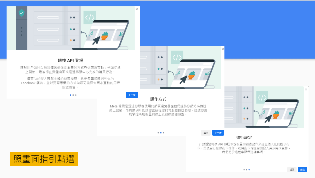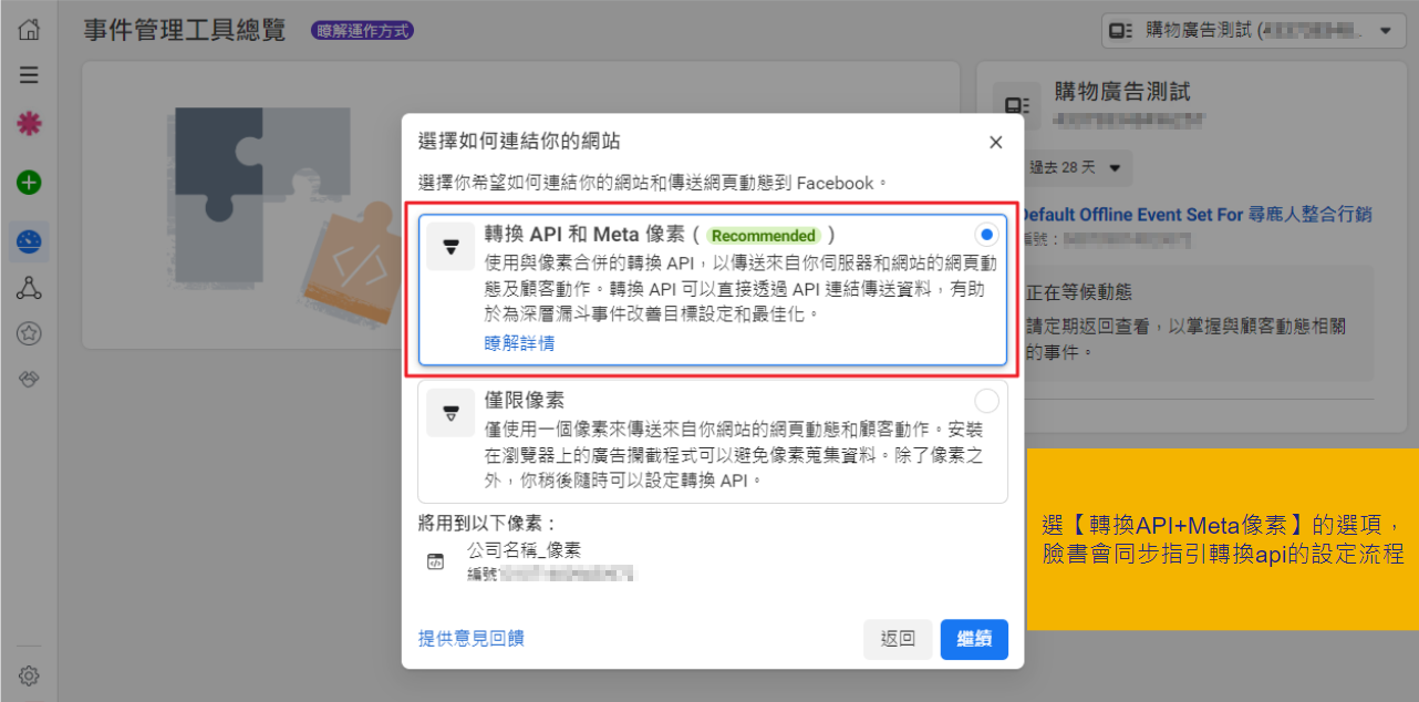 Step4 選【轉換API+Meta像素】的選項,臉書會同步指引轉換api的設定流程