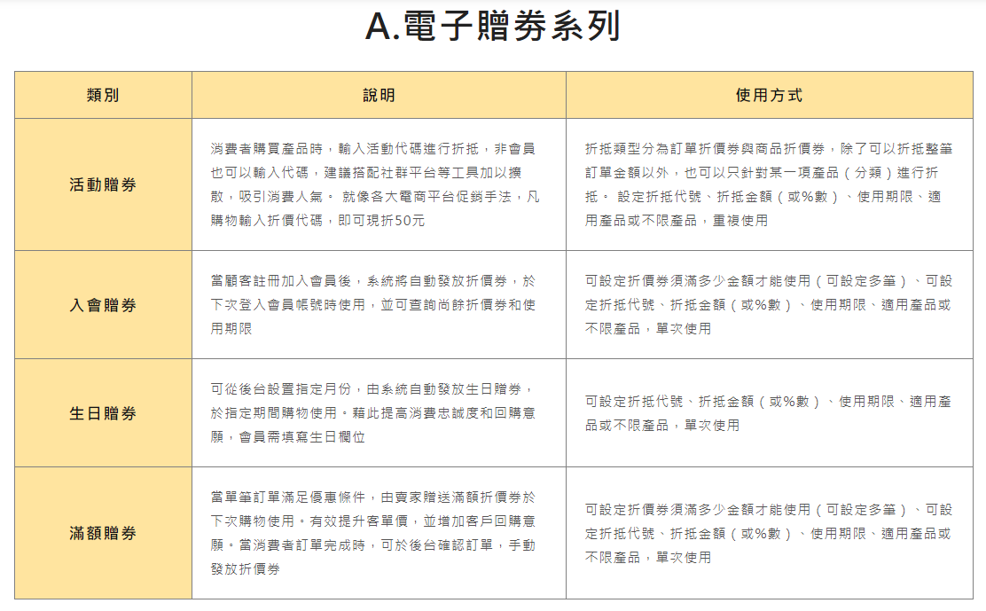 A、電子贈券系列: