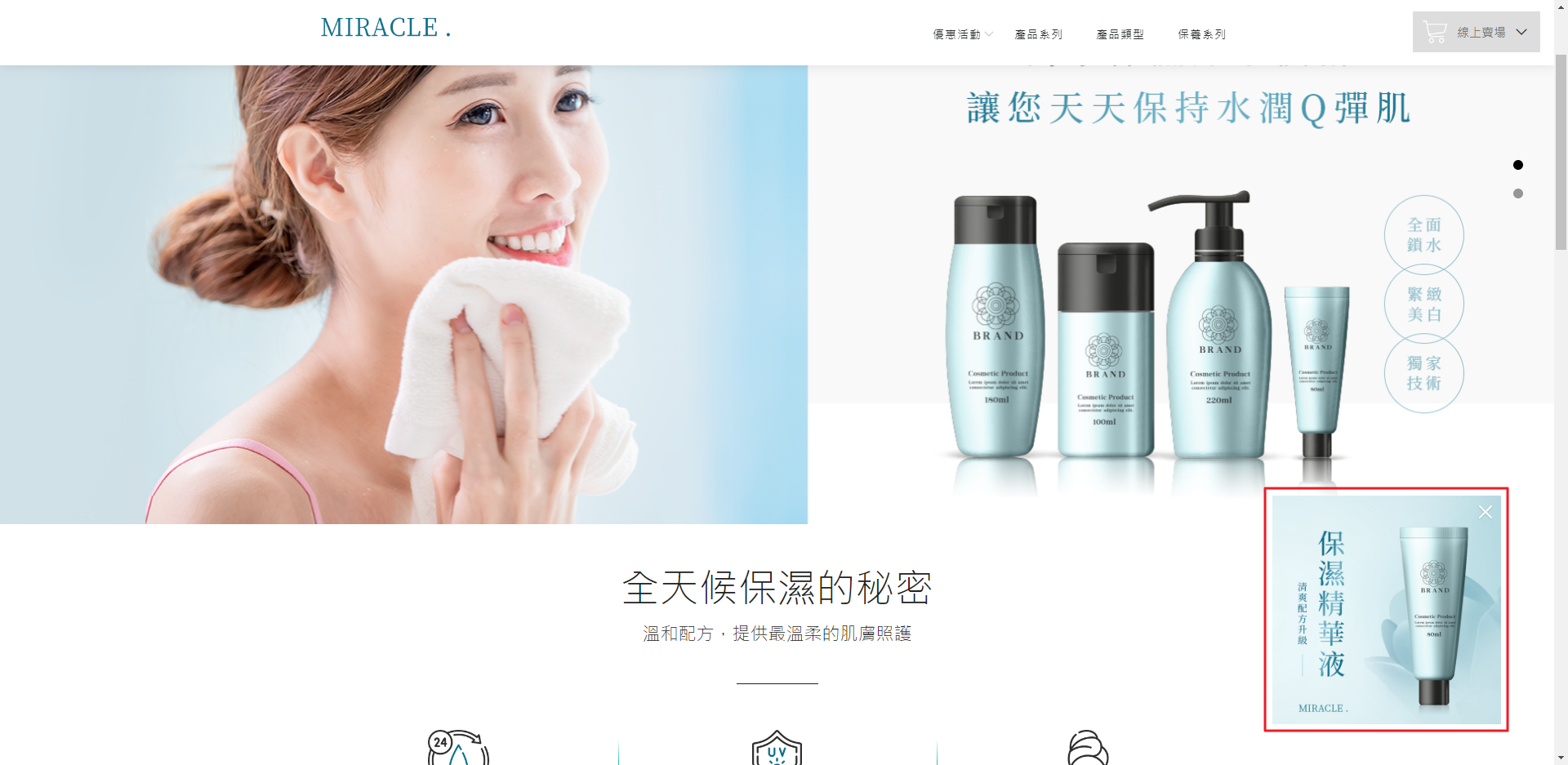 透過正方形圖片的固定形式輪播,不僅能簡潔版面的配置,避免造成頁面的混亂,而且交替輪播,更能夠加深瀏覽者閱覽資訊的印象哦!