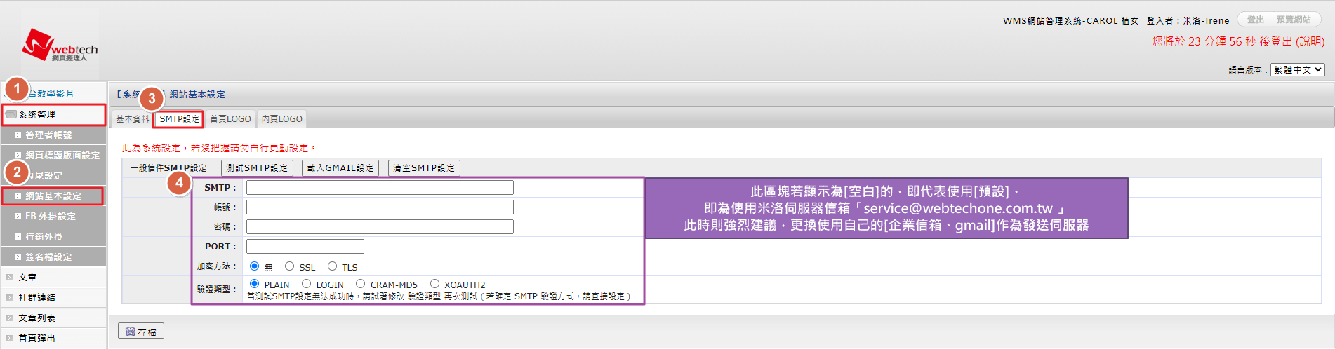 您的網站SMTP是綁定米洛伺服器信箱「service@webtechone.com.tw 」嗎?