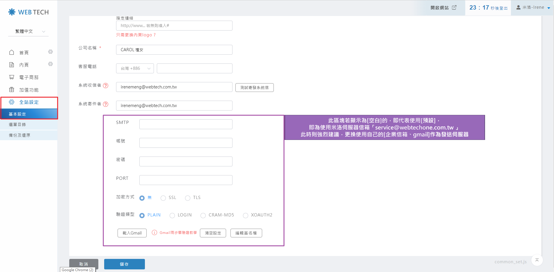 強烈建議您更改使用「自己的企業信箱或Gmail當作發信伺服器」,