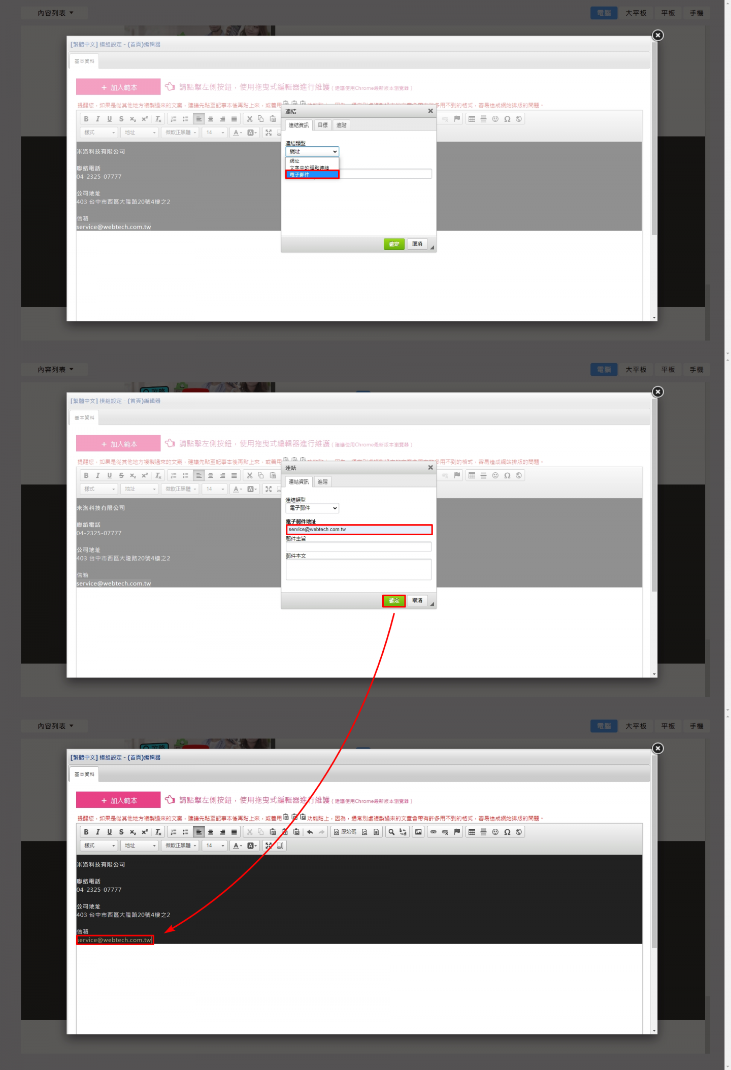 ※ 如果您想在您的網頁中,將信箱資訊設置超連結功能,請依照下列步驟操作即可完成唷!