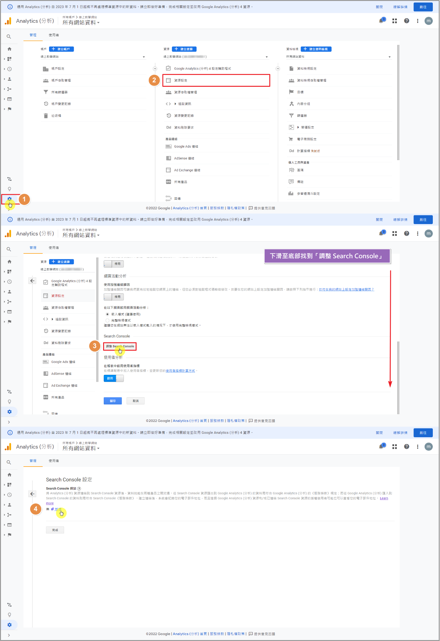 STEP 3:進到 GA (Google Analytics)中,點選「設定