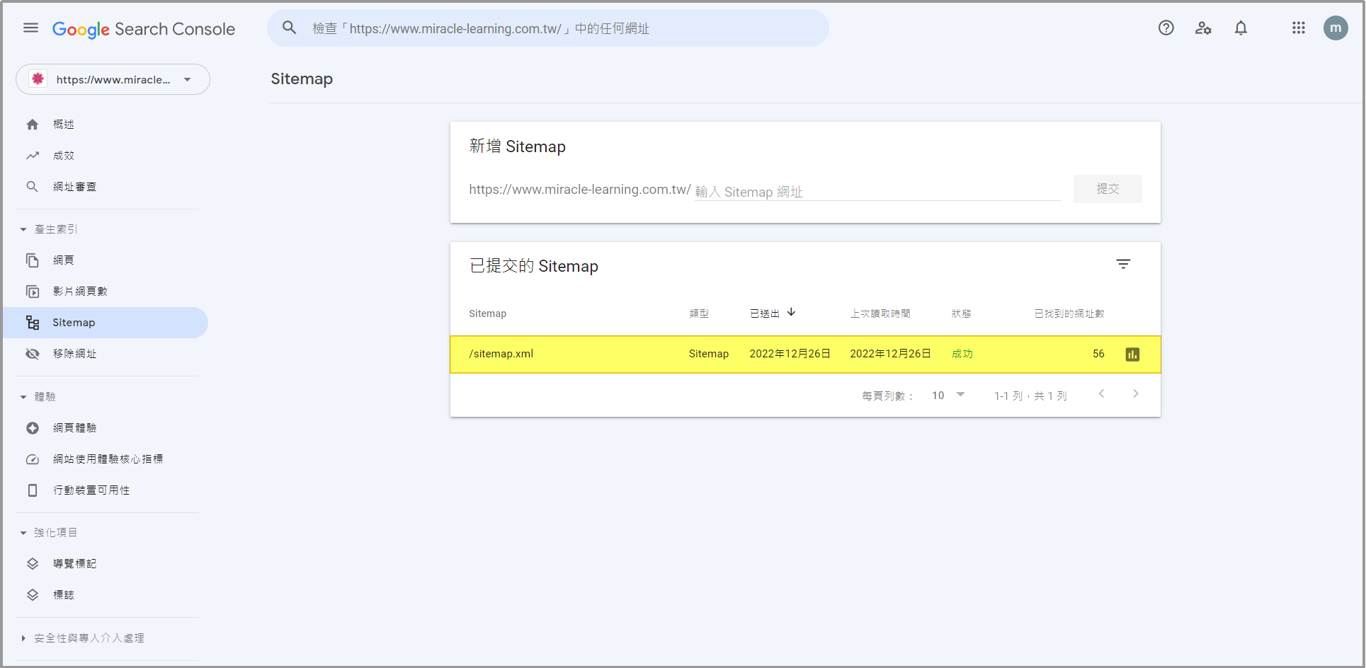 STEP 7:即可在「已提交的 Sitemap」中,查看到剛剛提交「成功」的狀態了!