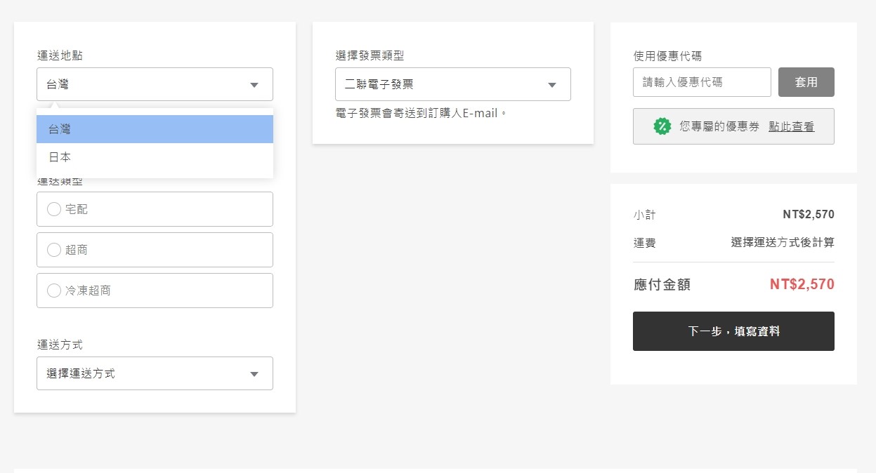 - 某些產品無法選擇相同的運送方式結帳時,未結帳的產品會保留在購物車