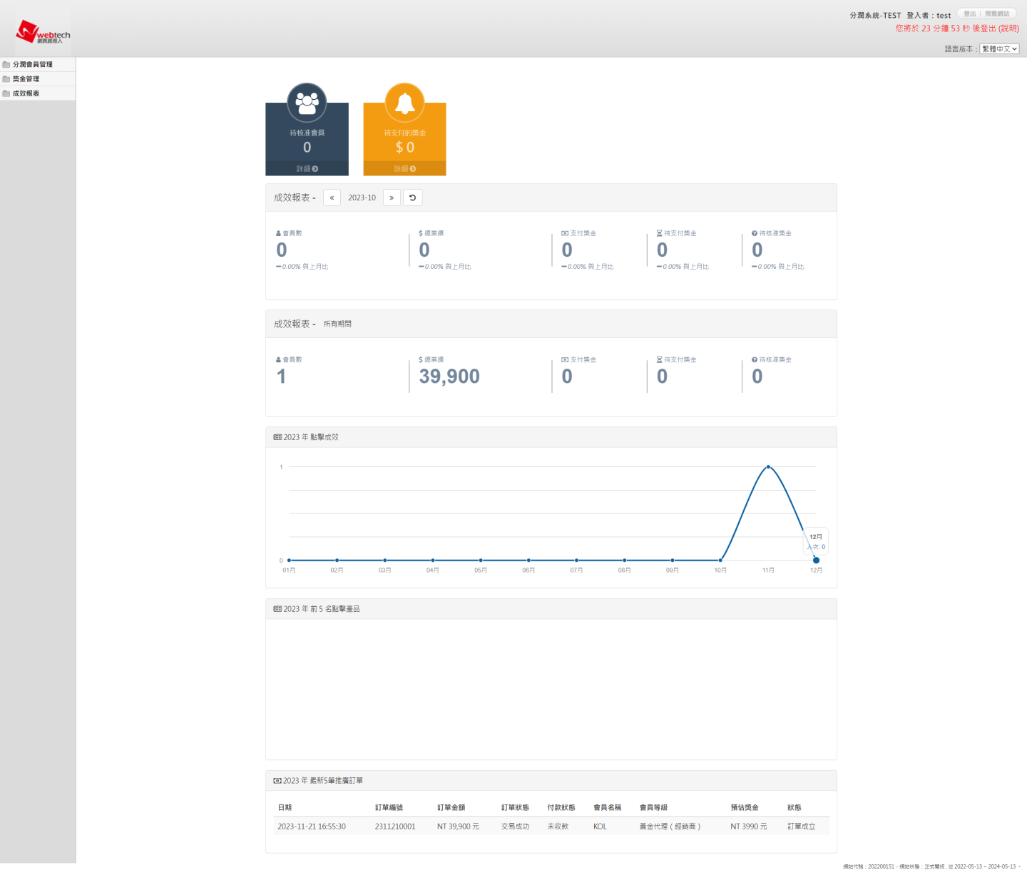 - 「推廣會員」獨立的使用平台(「推廣會員」可從分潤系統的前台登入,查看自己的推廣狀況以及分潤獎金)