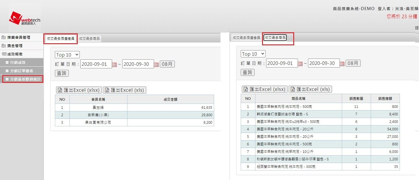 STEP 1:點選「成效報表」>「推廣最受歡迎統計」即可查看到系統針對分銷排行的分析