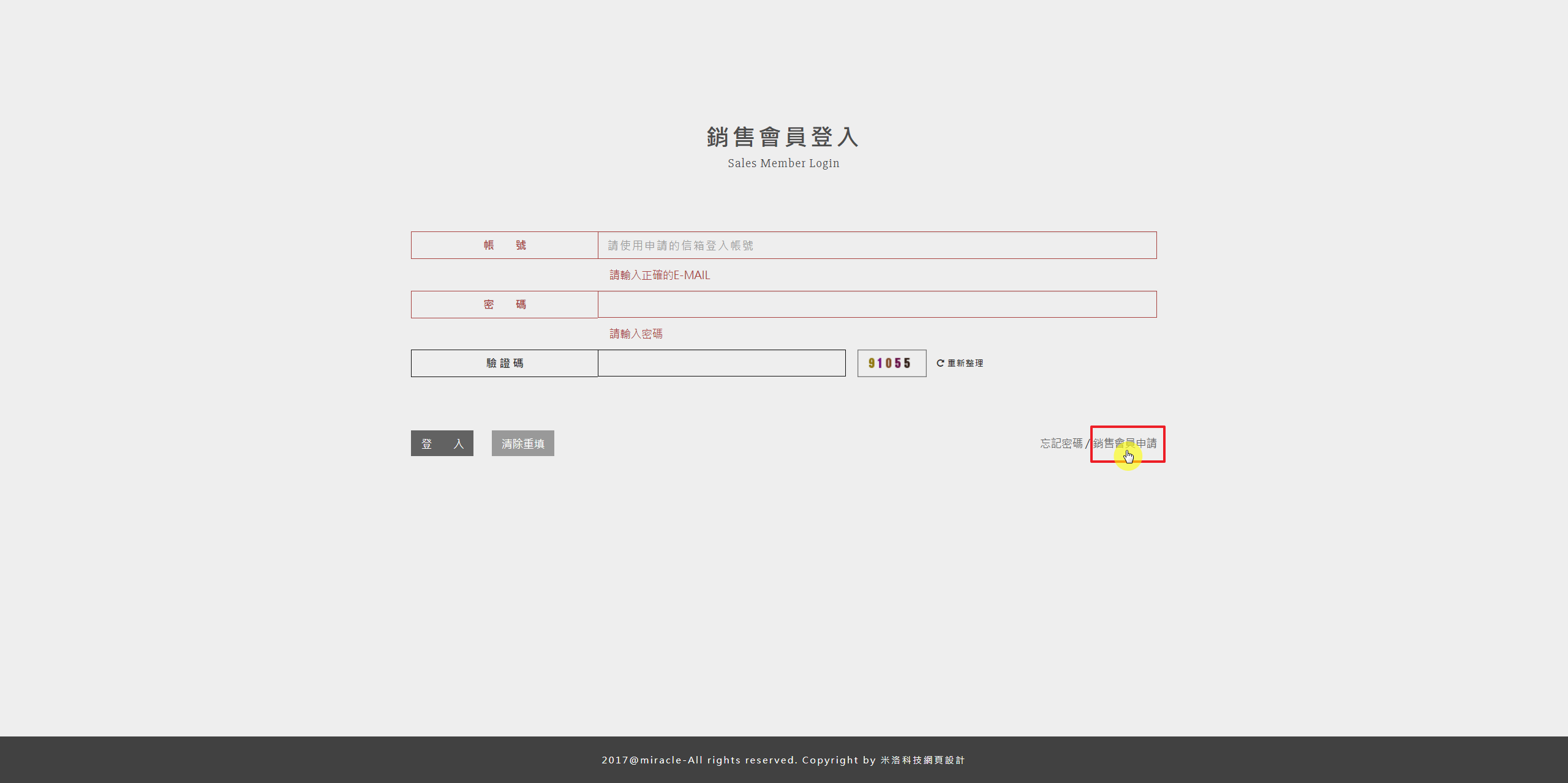 STEP 2:進入登入畫面,點選「銷售會員申請」